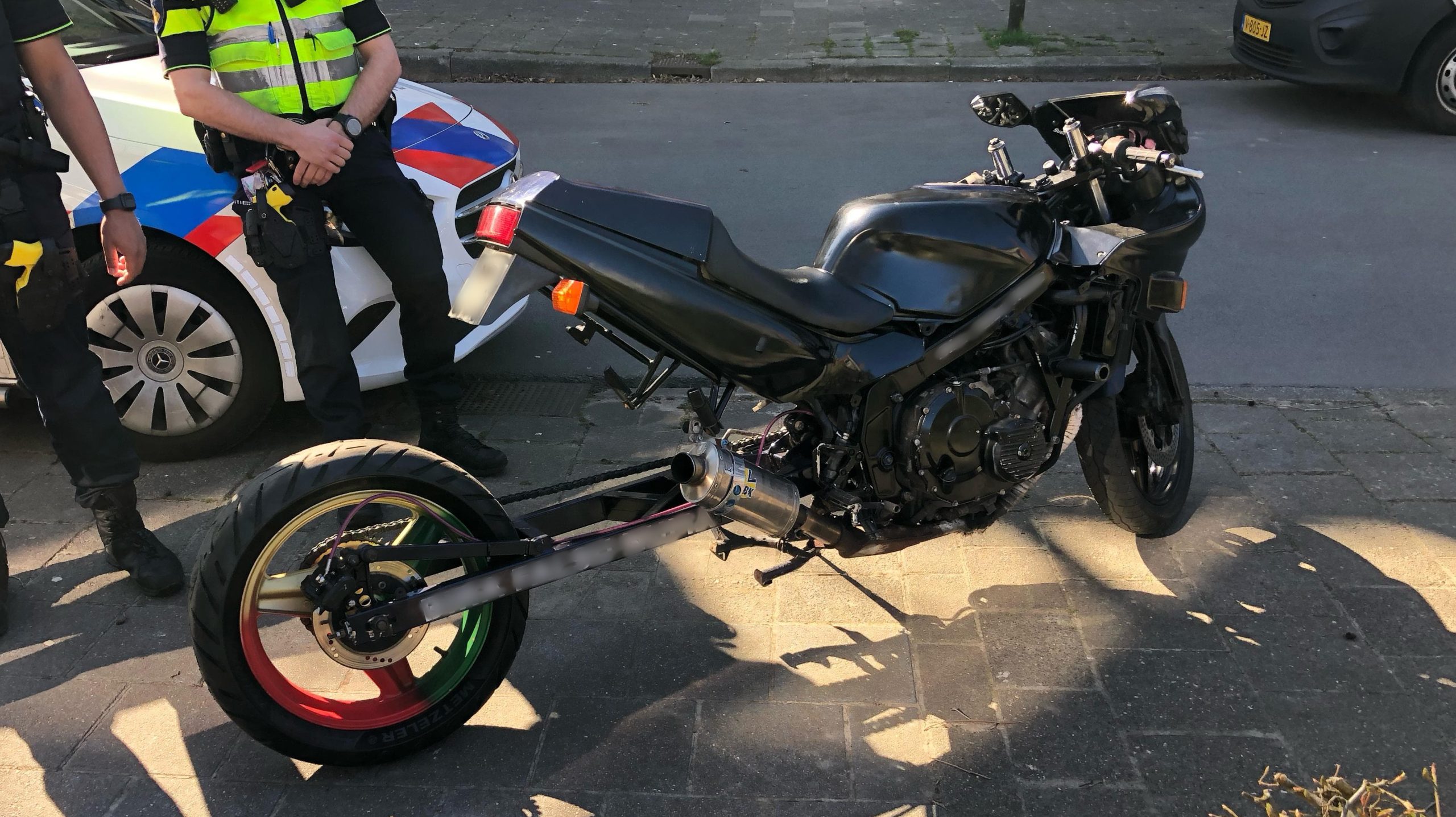De man werd meegenomen naar het politiebureau en zijn motorfiets, met een opvallend verlengd achterstuk, werd door agenten in beslag genomen.