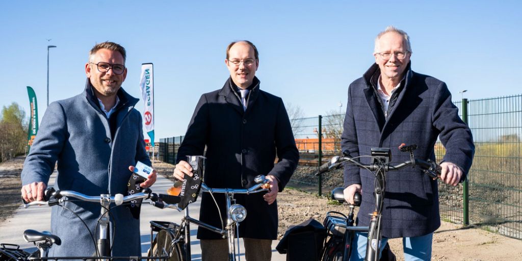 Gedeputeerde Erik-Jan Bennema (provincie Groningen), wethouder Philip Broeksma (Groningen) en wethouder Stefan van Keijzerswaard (Het Hogeland) verrichten de opening maandagmiddag op de fiets. Andere fietsers die bij de opening langskwamen, kregen een paar 050-sokken uitgedeeld vanwege de gelegenheid.