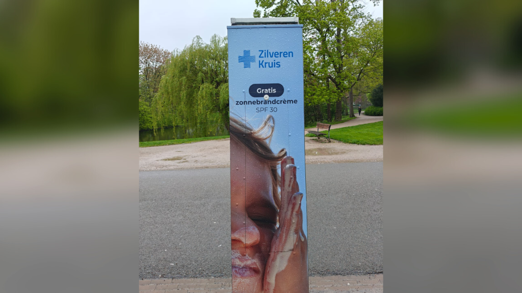 In het Noorderplantsoen staat sinds kort een zogenoemde smeerpaal, oftewel zonnebranddispenser. Daar kun je je gratis insmeren met zonebrandcrème.