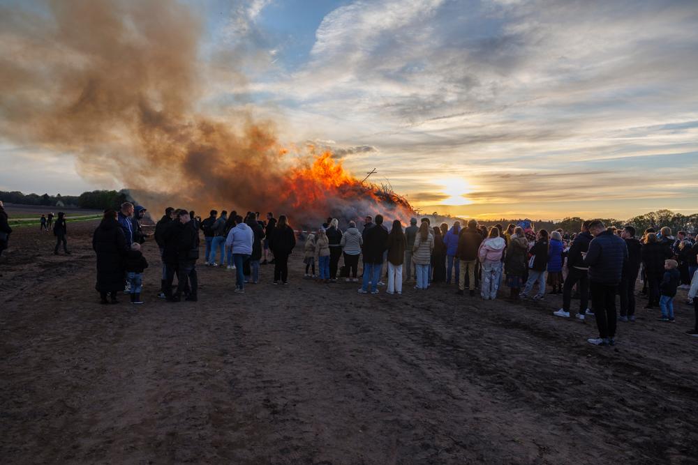 Rond 20.00 uur was het druk aan de Weg Langs het Hunnebed bij Noordlaren. “De jongste inwoners van het dorp hebben onder begeleiding met een fakkel de paasbult aangestoken”, vertelt een fotograaf. “Binnen de kortste keren stond de snoeihoutbult in lichterlaaie. Op het terrein bevonden zich op dat moment enkele honderden bezoekers. Zij maakten het gezellig met een praatje, een drankje en een hapje.”