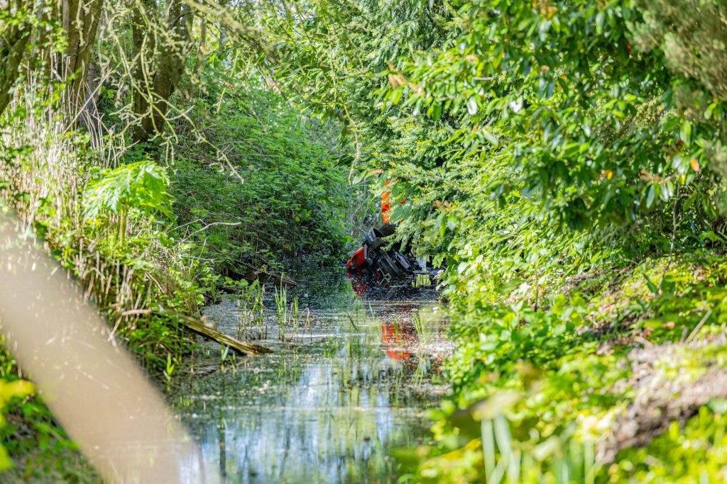 Brandweerlieden gekleed in waadpakken hebben het slachtoffer uit de sloot gered. “Ambulancepersoneel heeft het slachtoffer gestabiliseerd. Daarna is de persoon met onbekende verwondingen overgebracht naar het ziekenhuis.” Hoe de zitmaaier in de sloot terecht kon komen, is onbekend. Hier wordt onderzoek naar gedaan. Bij het ongeluk waren geen andere voertuigen betrokken.