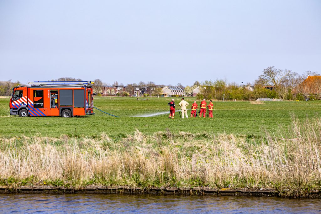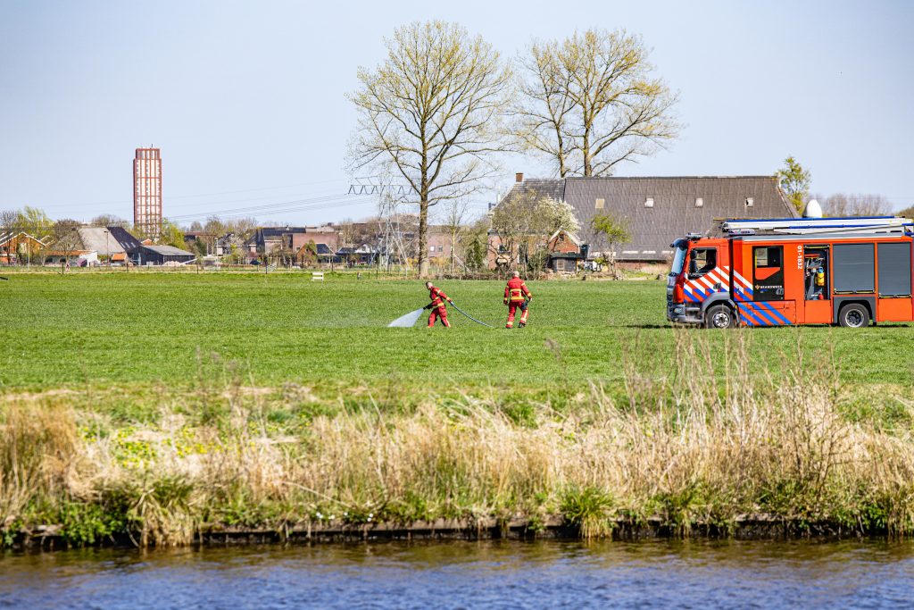De melding van de brand kwam rond 14.50 uur bij de hulpdiensten binnen. “De melding die we ontvingen, was dat er een rietkraag in brand zou staan”, vertelt brandweerwoordvoerder Johan Bosklopper. “Omdat het al een hele tijd niet geregend heeft, is het erg droog in de natuur. Als Veiligheidsregio hebben we ruim een week geleden opgeschaald naar fase 2. Bij meldingen van natuurbranden zetten we daarom direct extra materieel en personeel in.” Zo rukten twee tankautospuiten uit en kwamen ook de schuimbluswagen en het drone-/verkenningsteam van de brandweer ter plaatse.