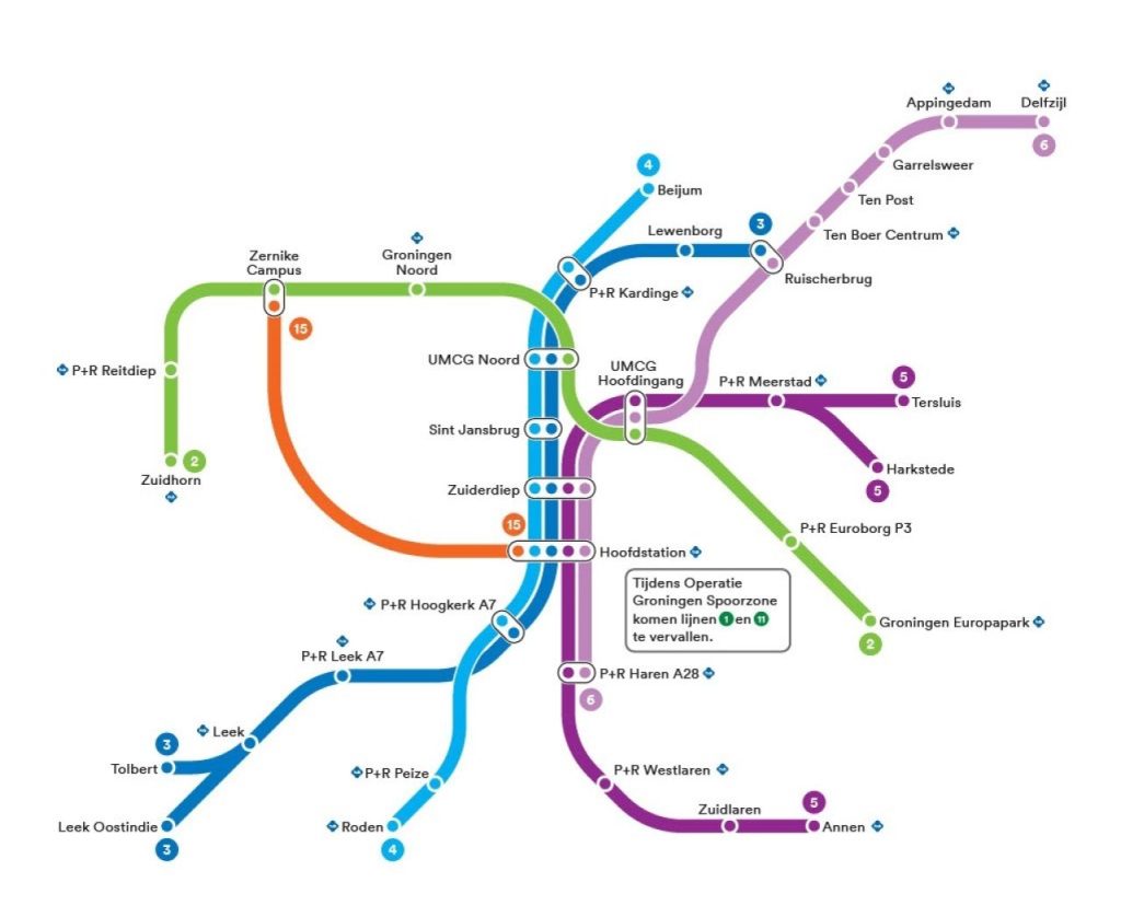 Op de onderstaande kaart is een overzicht te vinden van de buslijnen tijdens Operatie Groningen Spoorzone
