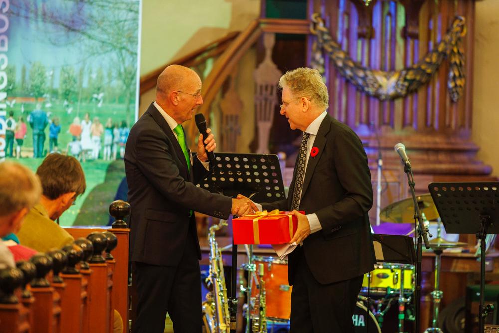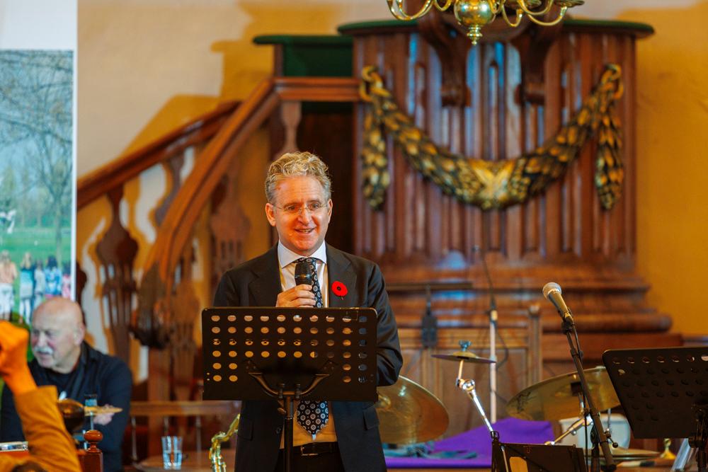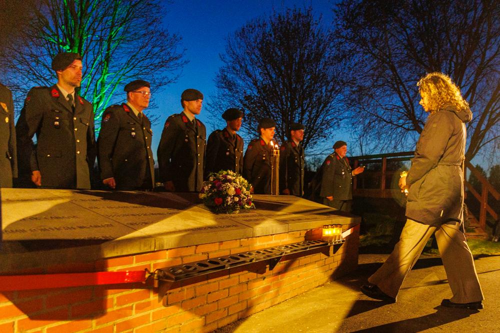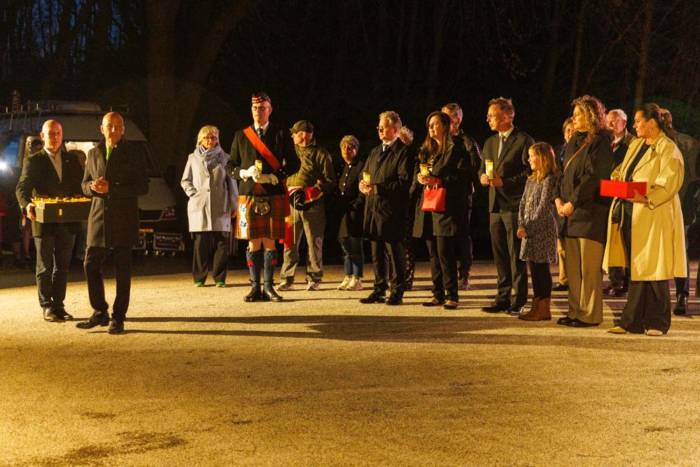 “Dat kun je wel zeggen. Commissaris van de Koning René Paas (CDA) en wethouder Kirsten de Wrede (Partij voor de Dieren) waren aanwezig, maar ook de Canadese ambassadeur in Nederland, Hugh Adsett, was naar Groningen gereisd. Meneer Adsett is nog niet zo heel lang ambassadeur en moest vanwege zijn werk in Groningen aanwezig zijn. Dat bezoek heeft hij gecombineerd met het bijwonen van ons programma. Na afloop vertelde hij mij dat hij het heel bijzonder en indrukwekkend had gevonden. Met name de ceremonie bij het Regimentenplateau in het bos had indruk op hem gemaakt.”