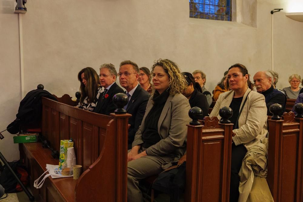 “We zijn begonnen in de kerk van Noorddijk. Arjen Boswijk hield een mooie voordracht, er was muziek van WestendJ en schrijver Hessel de Walle vertelde over Esmée van Eeghen. Van Eeghen was een verzetstrijdster die tijdens de Tweede Wereldoorlog vermoord is door de Duitse bezetter bij de Paddepoelsterbrug. In de geschiedenis is ze lange tijd een omstreden figuur geweest, waarbij er vergelijkingen zijn met Hannie Schaft. Van Eeghen zou namelijk geheuld hebben met de Duitse bezetter. Onderzoek van De Walle heeft aangetoond dat dit niet klopt. Voor het Fries Museum was dit al eerder aanleiding om eerherstel te verlenen. In Groningen wordt er op dit moment gewerkt aan het oprichten van een monument dat bij het Van Starkenborghkanaal moet komen.”