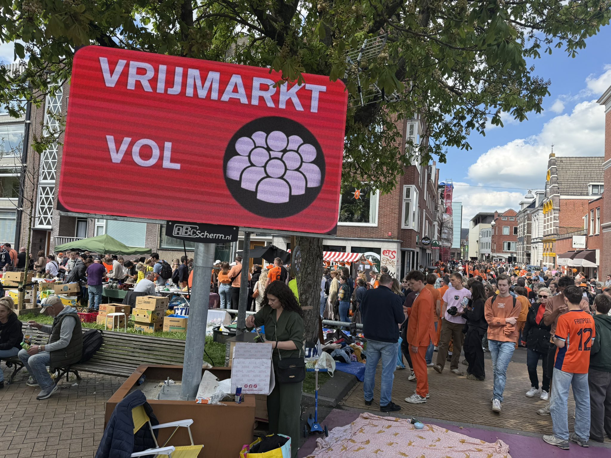 De vrijmarkt op de Singels in Groningen tijdens Koningsdag was erg druk. Zo druk zelfs dat de gemeente halverwege de middag opriep de markt te mijden. Ondanks de drukte genoot het toegestroomde publiek van de koopwaar en de sfeer.