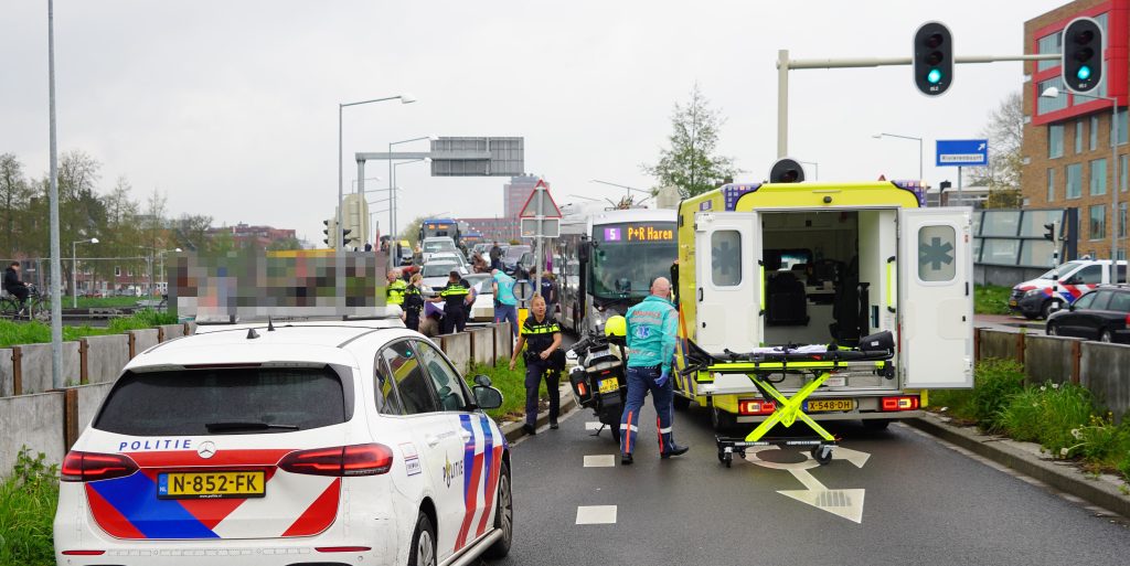 Een ambulance en een politieauto waren snel ter plaatse. De weg was tijdelijk volledig afgesloten.