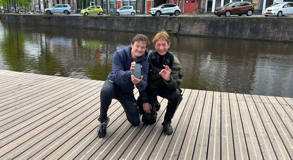 Een week eerder, op Koningsdag, dook hetzelfde team ook al in Groningen. Toen was het Sanne die haar telefoon tussen wal en schip had laten vallen in het centrum. Ondanks de feestdag kon het team snel ter plaatse zijn. Binnen enkele minuten na het duiken had Marja ook die telefoon teruggevonden. In januari werd op nagenoeg dezelfde plek de telefoon opgevist.