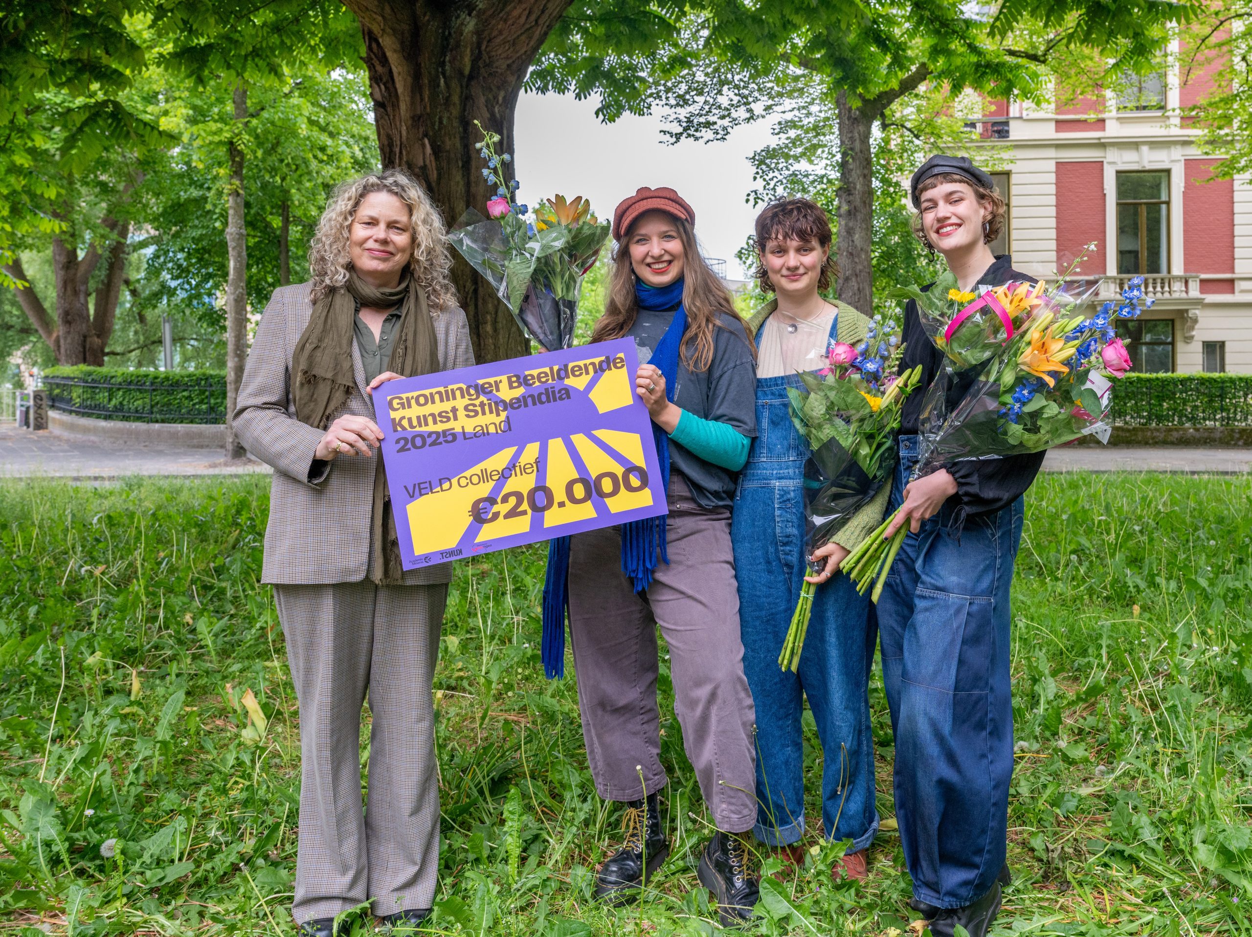 Cas van Deurssen en het VELD collectief hebben deze vrijdag de Groninger Beeldende Kunst Stipendia ontvangen van wethouder Kirsten de Wrede.