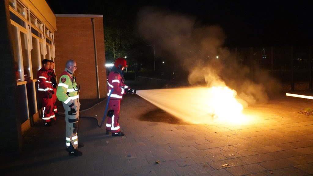 De melding van een brand op het terrein kwam rond 22.40 uur bij de hulpdiensten binnen waarna een tankautospuit naar het adres werd gestuurd. “Op het schoolplein bleek een kliko in brand te staan”, vertelt Wind. “Ondanks dat de brandweerlieden snel ter plaatse waren, konden ze niet voorkomen dat de afvalcontainer volledig verwoest werd. De brand is geblust met één straal hogedruk.”