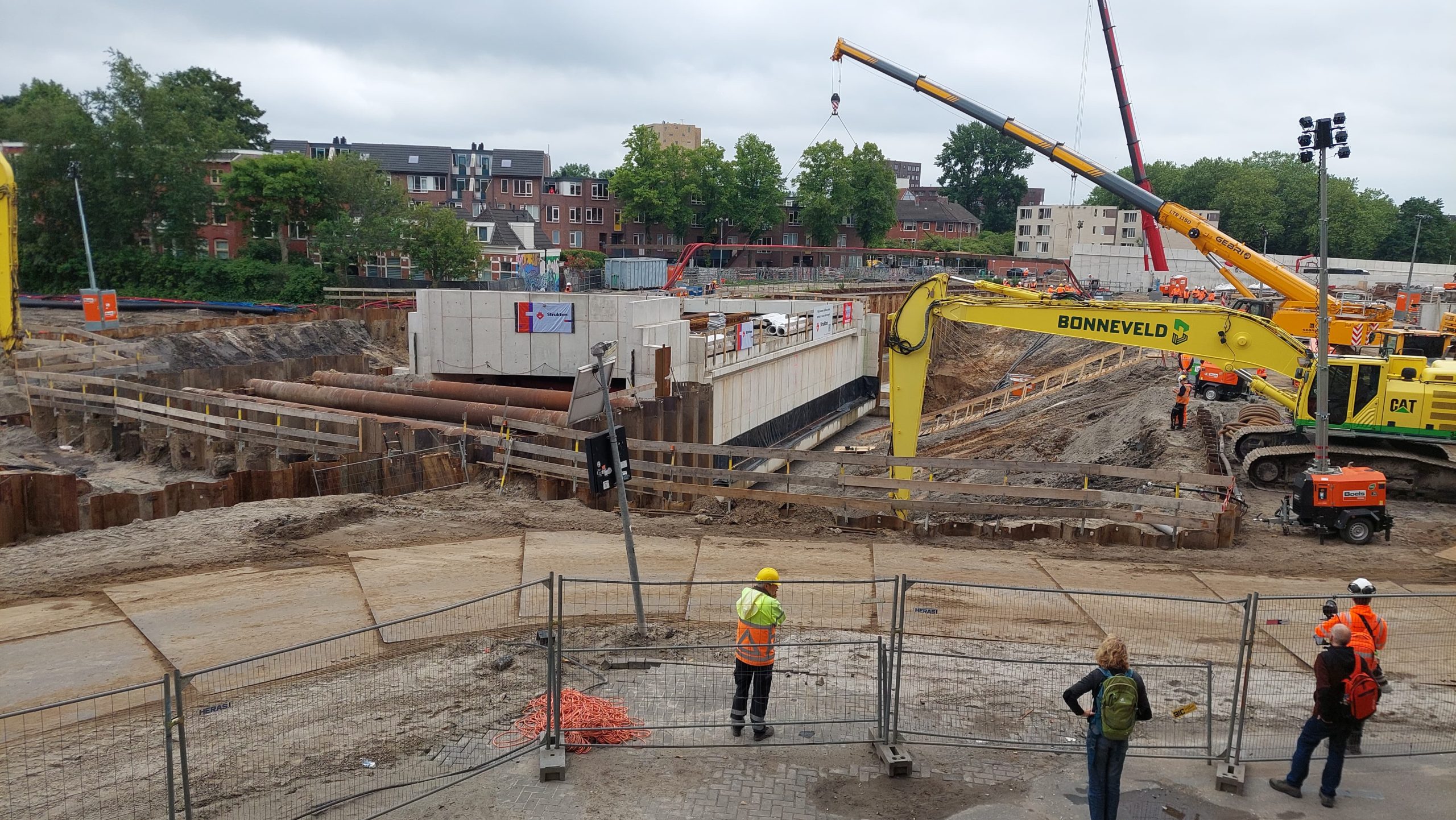 “Megasnel”, vertelt Amanda Reilman van Strukton. “Nog geen veertig minuutjes en hij stond al op z’n plek. Hij moet natuurlijk nog op de grond gaan zakken en dus echt neergezet worden. Maar hij staat al op een goede locatie.”