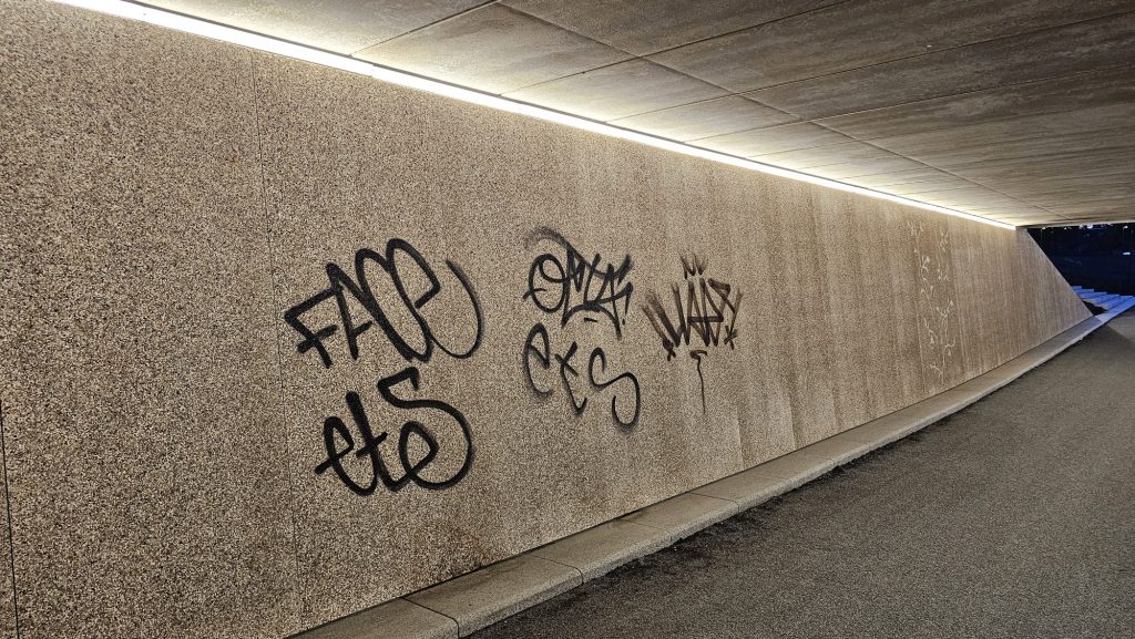 De Esperantotunnel in Groningen is nog geen dag open of de onderdoorgang is al beklad met graffiti.