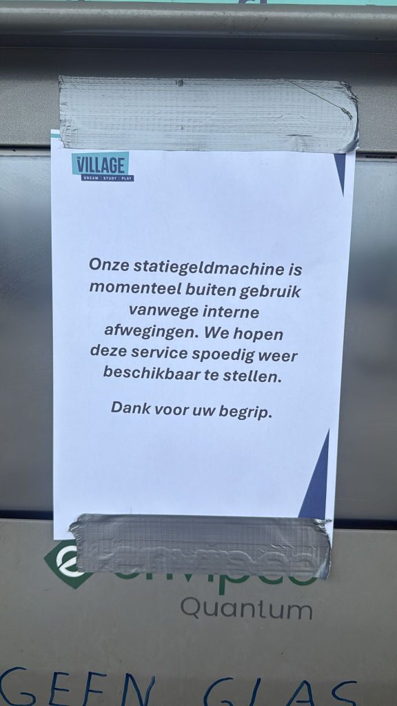 Maar de machine is nog niet perfect. Net als in de supermarkt blijkt de machine met regelmaat in storing te staan. Zo ook vrijdagmiddag. Dit keer vanwege ‘interne overwegingen’.