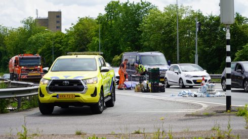 Hulpdiensten waren snel ter plaatse. “Rijkswaterstaat en de politie hebben een gespecialiseerd schoonmaakbedrijf laten komen die de weg schoon gaat maken. Tot die tijd blijft een rijstrook afgesloten.” Volgens Wind zorgt de afsluiting voor een flinke file.