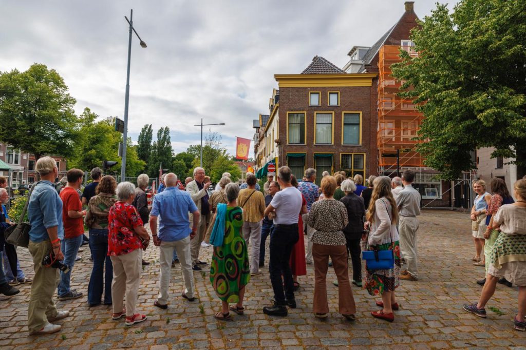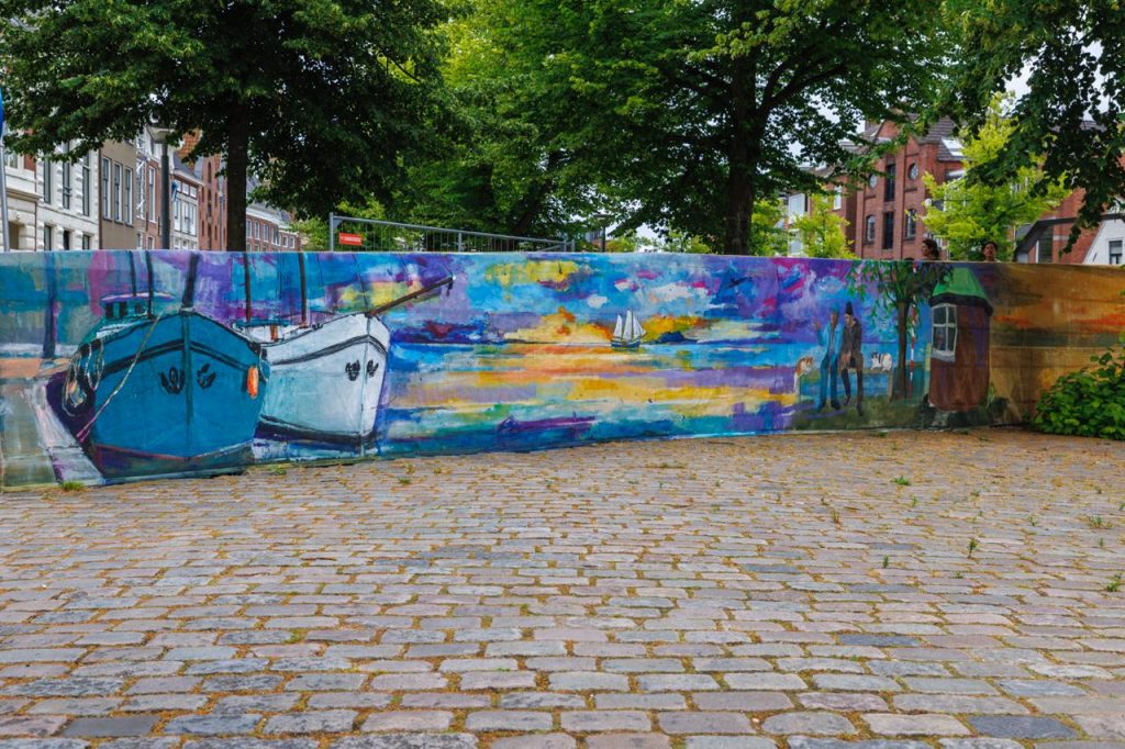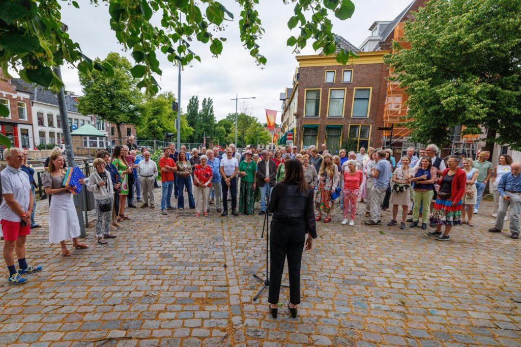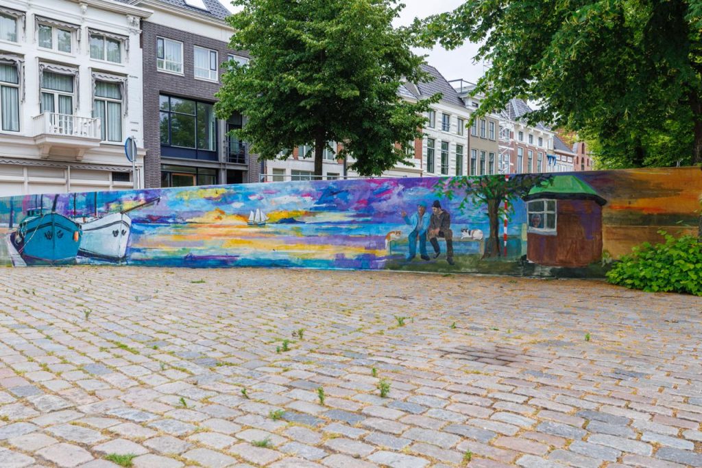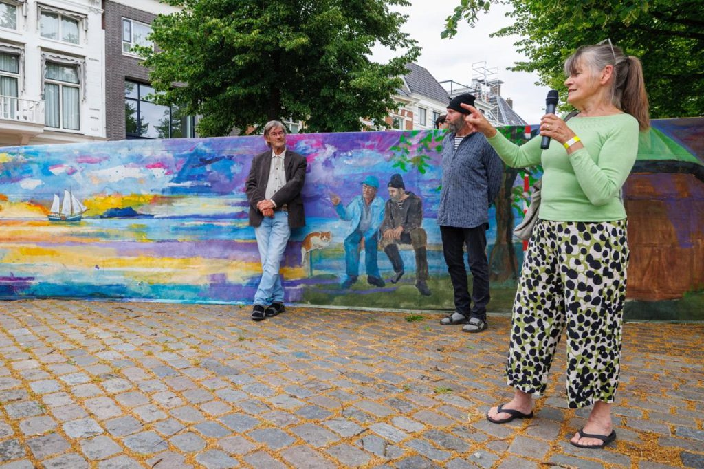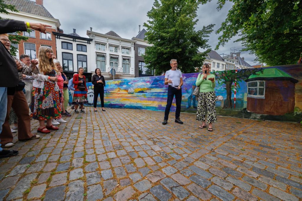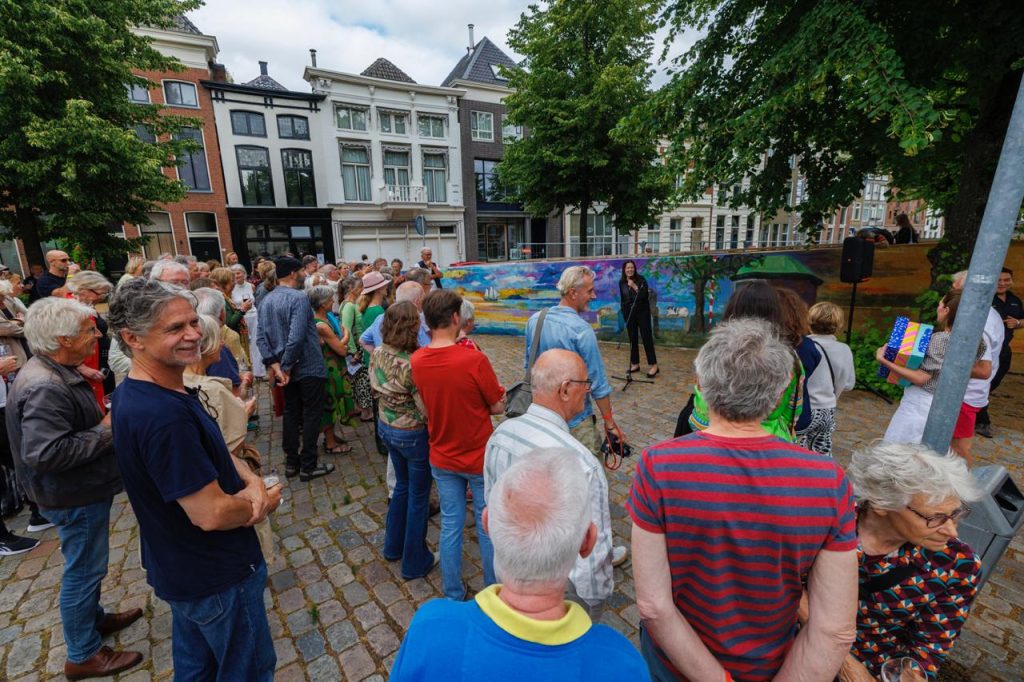Bij de tijdelijke Visserbrug is zaterdag een bijzondere schildering onthuld. De onthulling vond plaats ter ere van het veertigjarig bestaan van buurtvereniging Het A-Kwartier.