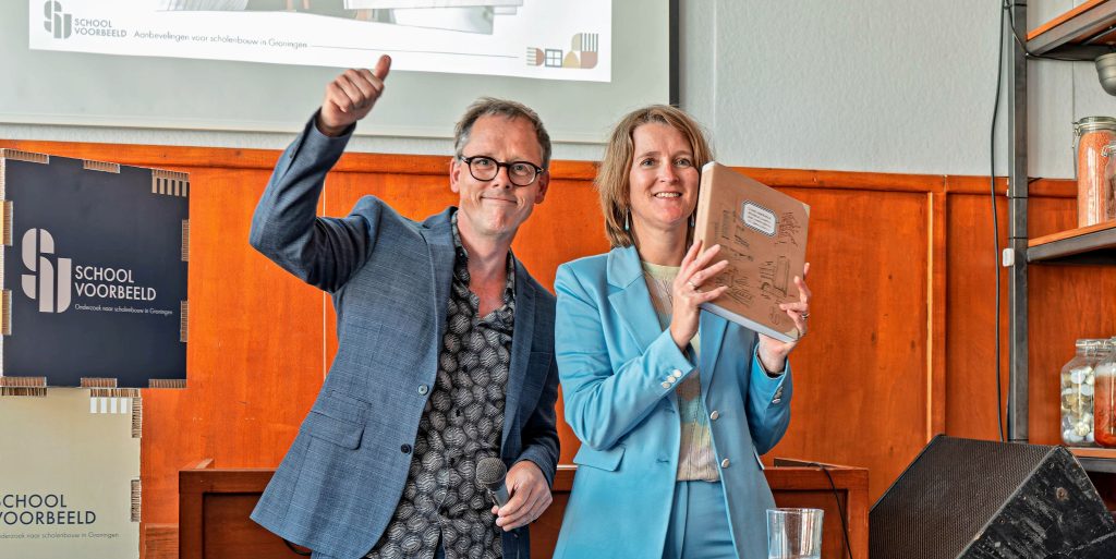 Wethouder Carine Bloemhoff ontving afgelopen vrijdag van architect en curator Bart van Kampen een boek met adviezen over hoe schoolgebouwen in de toekomst het best gebouwd kunnen worden.