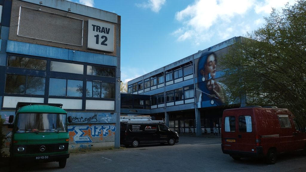 “De open dag vindt plaats in twee gebouwen”, vertellen Oline Lanting en Kyra Berris. Lanting woont in het gebouw, Berris heeft naast een woonplek ook een atelierruimte in hetzelfde pand. “Het gaat om de gebouwen Trav6 en Trav12. Trav6 is het voormalige Alfa-college, in Trav12 zat vroeger csg De Vinkenborgh. Beide schoolgebouwen zijn al diverse jaren in gebruik als broedplaats. Vandaag willen we aan het publiek laten zien wat er in deze gebouwen gebeurt en waarom het zo belangrijk is dat dit blijft bestaan.”