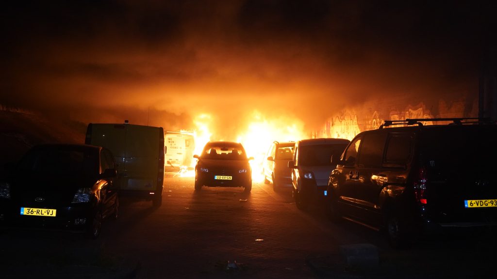 Op een parkeerplaats onder het Emmaviaduct, tussen het Cascadeplein en het Hoofdstation, woedde in de nacht van maandag op dinsdag een grote brand.