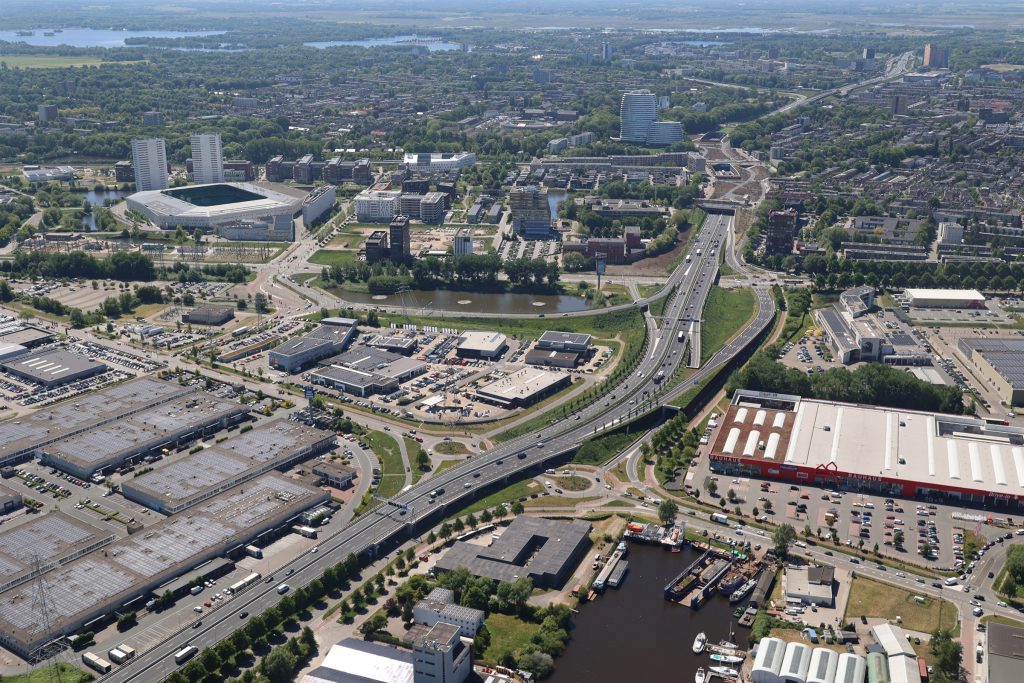 Rijkswaterstaat heeft nieuwe luchtfoto’s gedeeld van de zuidelijke ringweg, die kijkers in vogelvlucht meenemen over het gehele gebied rond de verdiepte ligging.