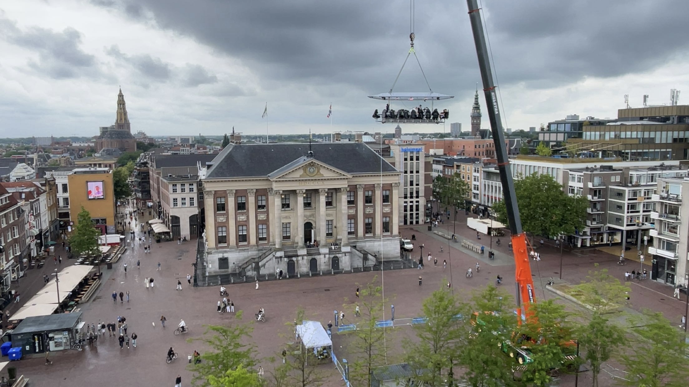 Liefhebbers van lekker eten met een mooi uitzicht konden woensdag letterlijk op hoog niveau Italiaans dineren. De locatie: midden op de Grote Markt, op een hoogte van vijftig meter.