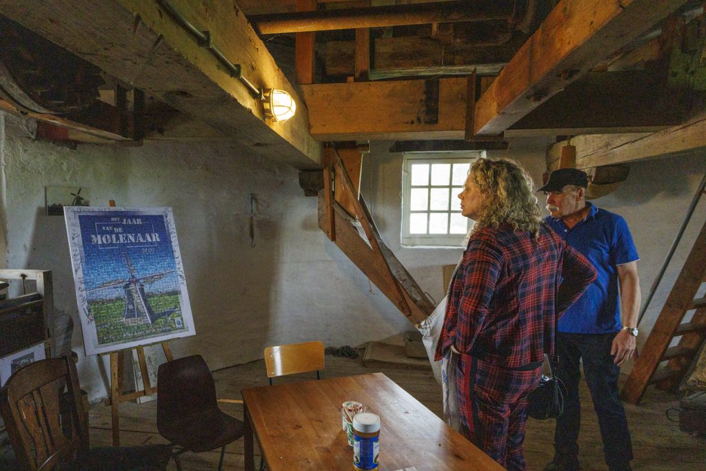Herbrink: “Daarna zijn we met het gezelschap de molen ingegaan. De dag werd gestart met het losmaken van de vang. De vang is de rem die het bovenwiel van de molen ontklemt en ervoor zorgt dat de molen stopt met draaien. Om de molen te laten draaien, moet de vang opgetild worden, waardoor het bovenwiel vrij kan bewegen. Ik heb mevrouw De Wrede uitgelegd hoe dit moest, waarop zij de molen in beweging heeft gezet.”