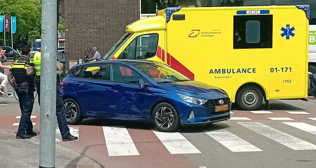 Op de kruising tussen de Kastanjelaan en de Eikenlaan in Selwerd raakte woensdag een scooterbestuurder gewond door een botsing met een personenauto.