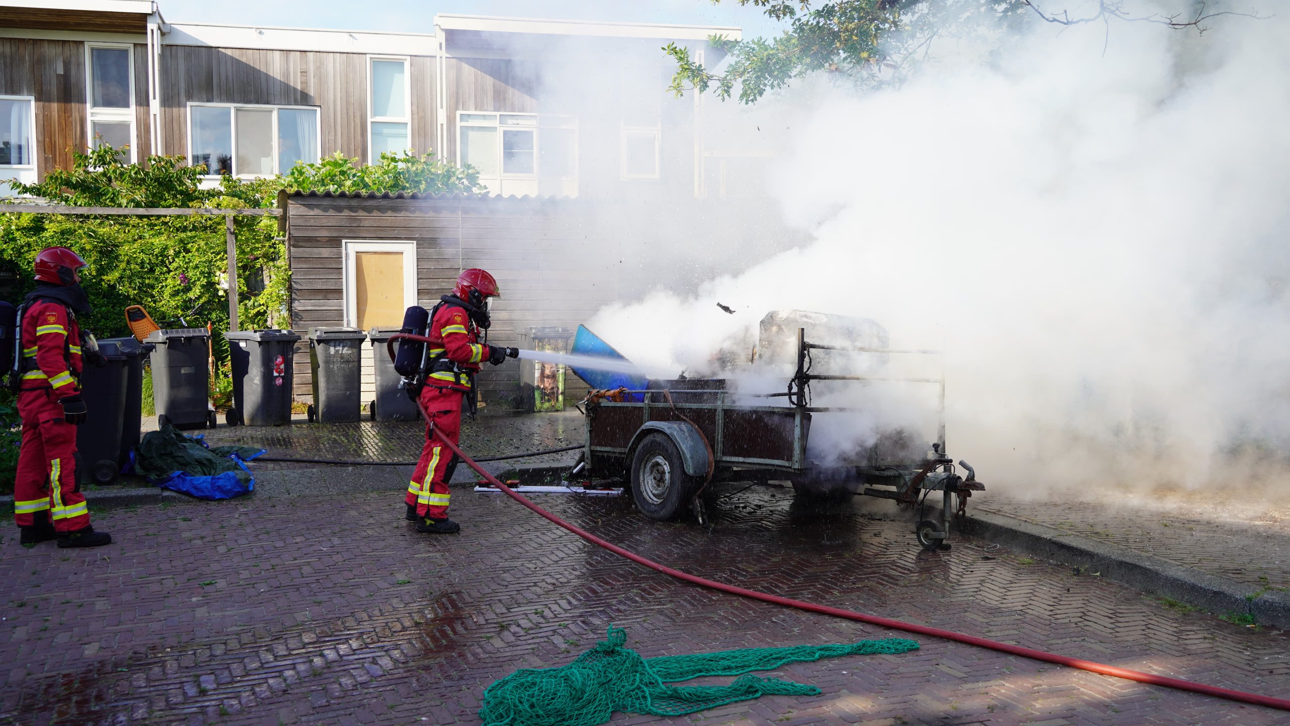 Maandagavond is een compressor op een aanhanger in brand gevlogen aan het Waterland in de Groninger wijk Lewenborg. De brandweer was snel ter plaatse en heeft de brand geblust.