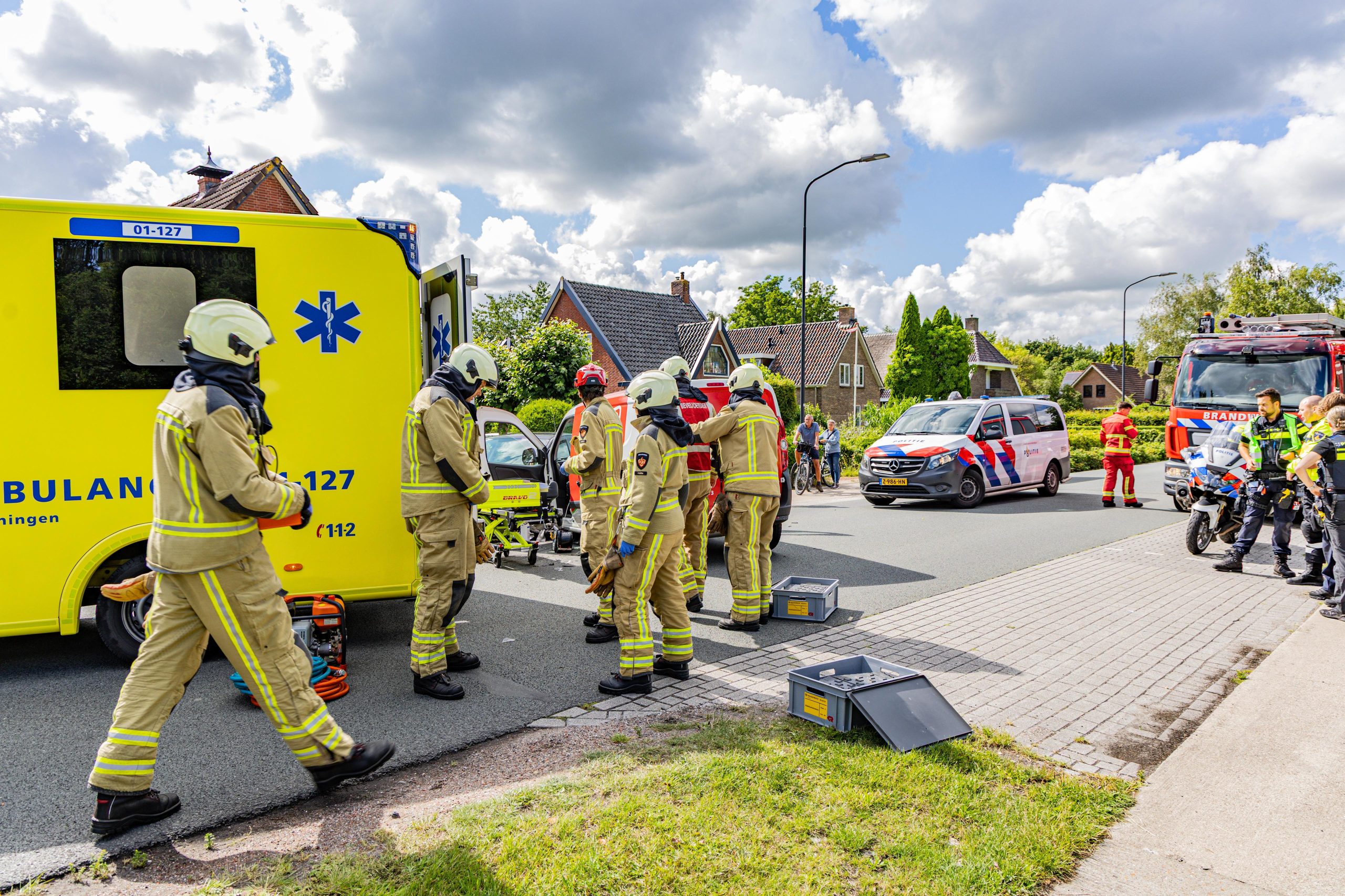 Het ongeluk gebeurde rond 16.15 uur. “Vermoedelijk als gevolg van een mislukte inhaalactie zijn de bestuurders van een personenauto en een bestelbusje met elkaar in botsing gekomen”, vertelt Ten Cate. “De klap was zo fors dat de bestuurder van het bestelbusje bekneld raakte in zijn voertuig.” Brandweer Eelde kreeg bij het verkeersongeluk hulp van collega’s uit de stad. Ook kwamen twee ambulances en het Mobiel Medisch Team (MMT) in een traumahelikopter ter plaatse.