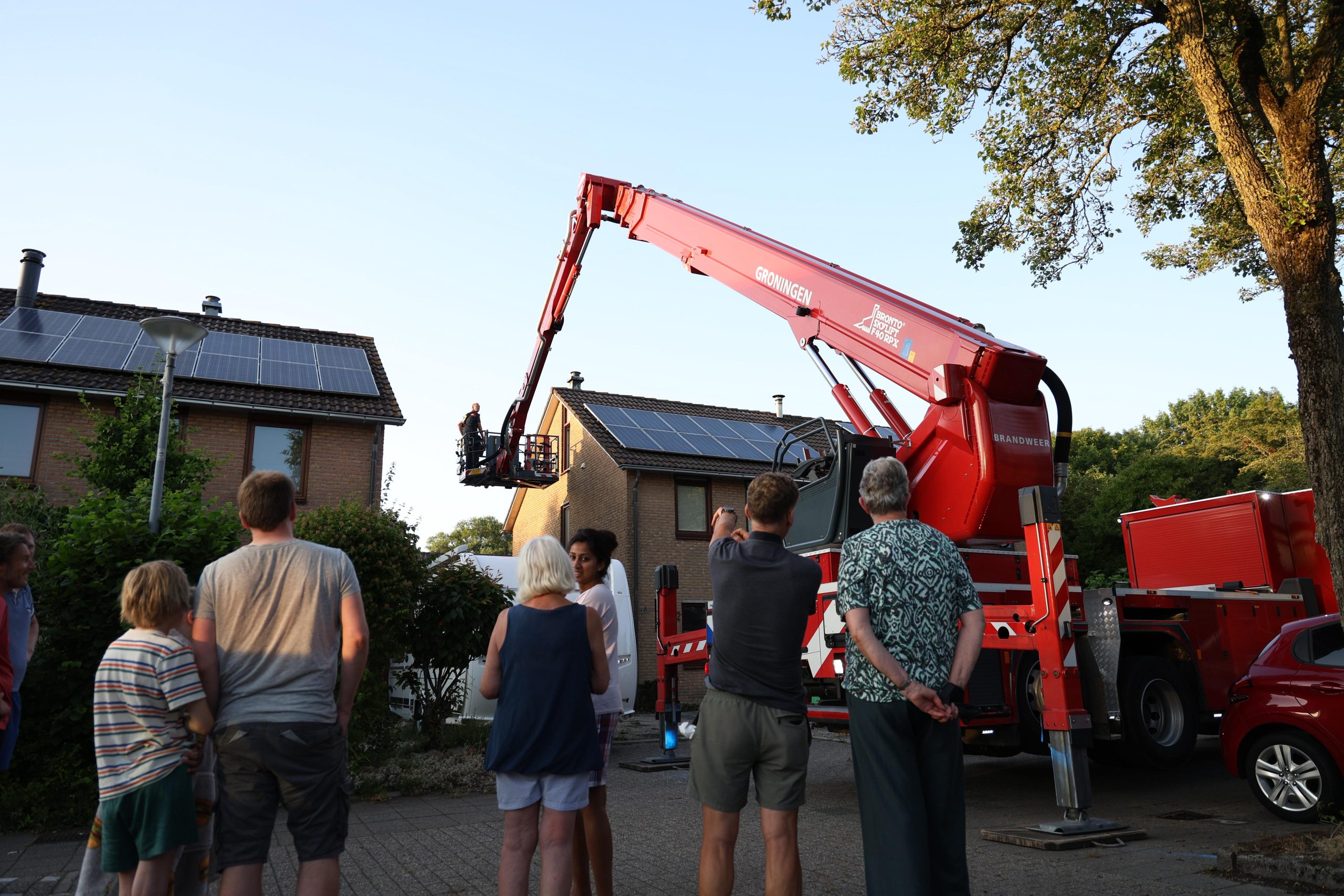 De melding van een dier in problemen kwam rond 20.30 uur bij de hulpdiensten binnen, waarna een hoogwerker naar de locatie werd gestuurd. “Door nog onbekende oorzaak was een vogel in de afvoer van de centrale verwarming terechtgekomen”, vertelt Ten Cate. “Eén van de brandweermensen is de woning ingegaan, terwijl de ander de hoogwerker in positie bracht en in de korf omhoog ging.”