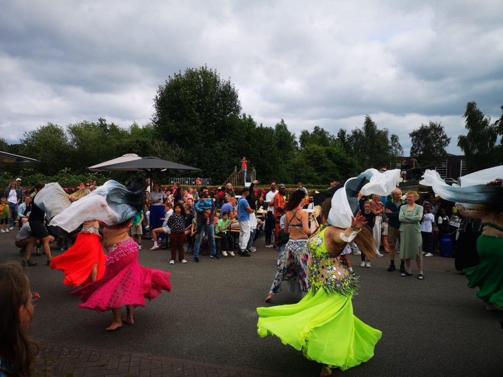 “Dat is aan de andere kant van de wijk: een groene speelplek met veel groen en bomen. Vroeger lag daar een dam, maar die overgang was niet langer veilig en kon niet meer gebruikt worden. Een enthousiaste bewoner uit de wijk heeft zich er sterk voor gemaakt om dit opnieuw te realiseren, en dat is gelukt! Het biedt nu volop mogelijkheden om heerlijk buiten te spelen; kinderen kunnen er bijvoorbeeld hutten bouwen. En in het kader van het festival hadden we daar allerlei leuke activiteiten, zoals verschillende foodtrucks, een optreden van de buikdansschool van Tineke Rouw-Oosterhuis, livemuziek en natuurlijk konden er marshmallows worden gemaakt!”