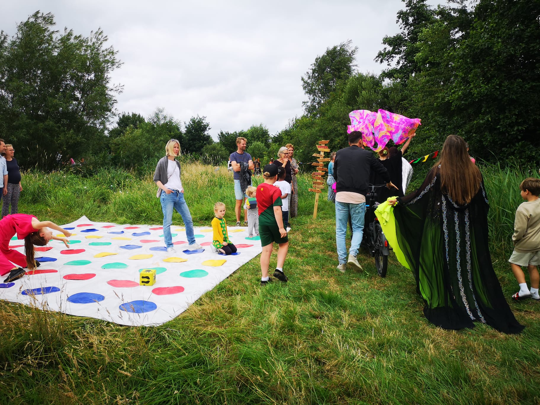 “Dat is aan de andere kant van de wijk: een groene speelplek met veel groen en bomen. Vroeger lag daar een dam, maar die overgang was niet langer veilig en kon niet meer gebruikt worden. Een enthousiaste bewoner uit de wijk heeft zich er sterk voor gemaakt om dit opnieuw te realiseren, en dat is gelukt! Het biedt nu volop mogelijkheden om heerlijk buiten te spelen; kinderen kunnen er bijvoorbeeld hutten bouwen. En in het kader van het festival hadden we daar allerlei leuke activiteiten, zoals verschillende foodtrucks, een optreden van de buikdansschool van Tineke Rouw-Oosterhuis, livemuziek en natuurlijk konden er marshmallows worden gemaakt!”