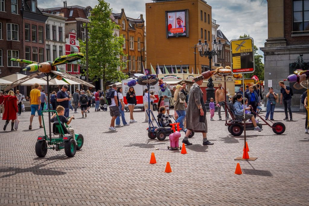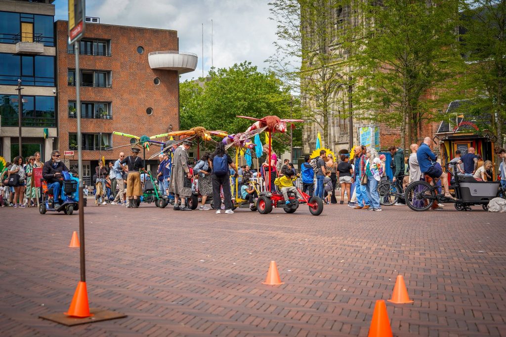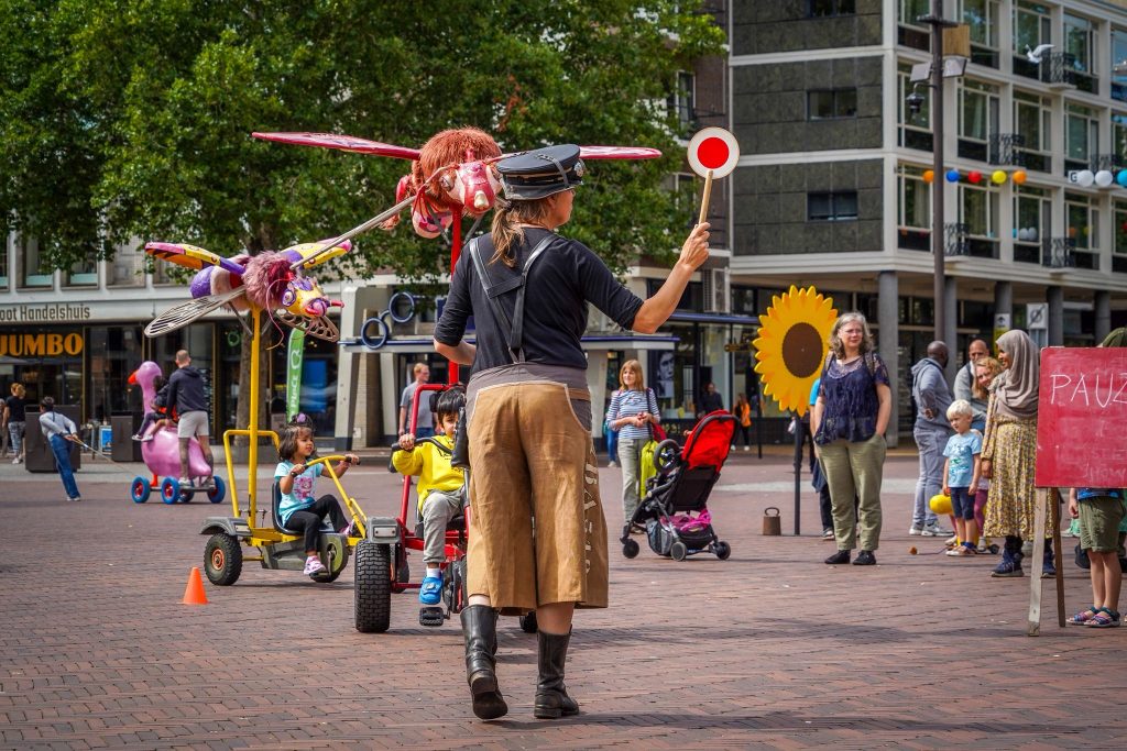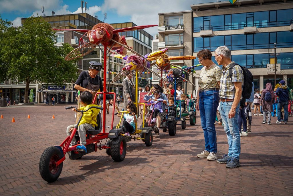 Voor Buzzz was er zondag veel belangstelling. “Wij hebben vijf reuze-insecten getraind om de mens te helpen bij hun transportgedrag,” vertelt Compagnie DaaD, het gezelschap achter Buzzz. “Het zijn onzekere tijden voor vlinders, kevers en andere kriebelbeestjes die zo belangrijk zijn voor de natuur. Steeds meer insecten verliezen terrein. Daarom hebben wij ons zondagmiddag sterk gemaakt voor natuurvriendelijk verkeer.”