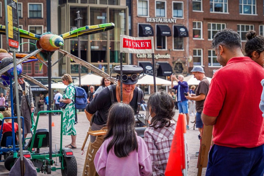 Op de Grote Markt kon er zondag gebruik worden gemaakt van een nieuwe lijndienst: Buzzz. De theatrale voorstelling was onderdeel van Zomerstad, een evenement dat deze zomer op diverse plekken in de stad wordt georganiseerd.