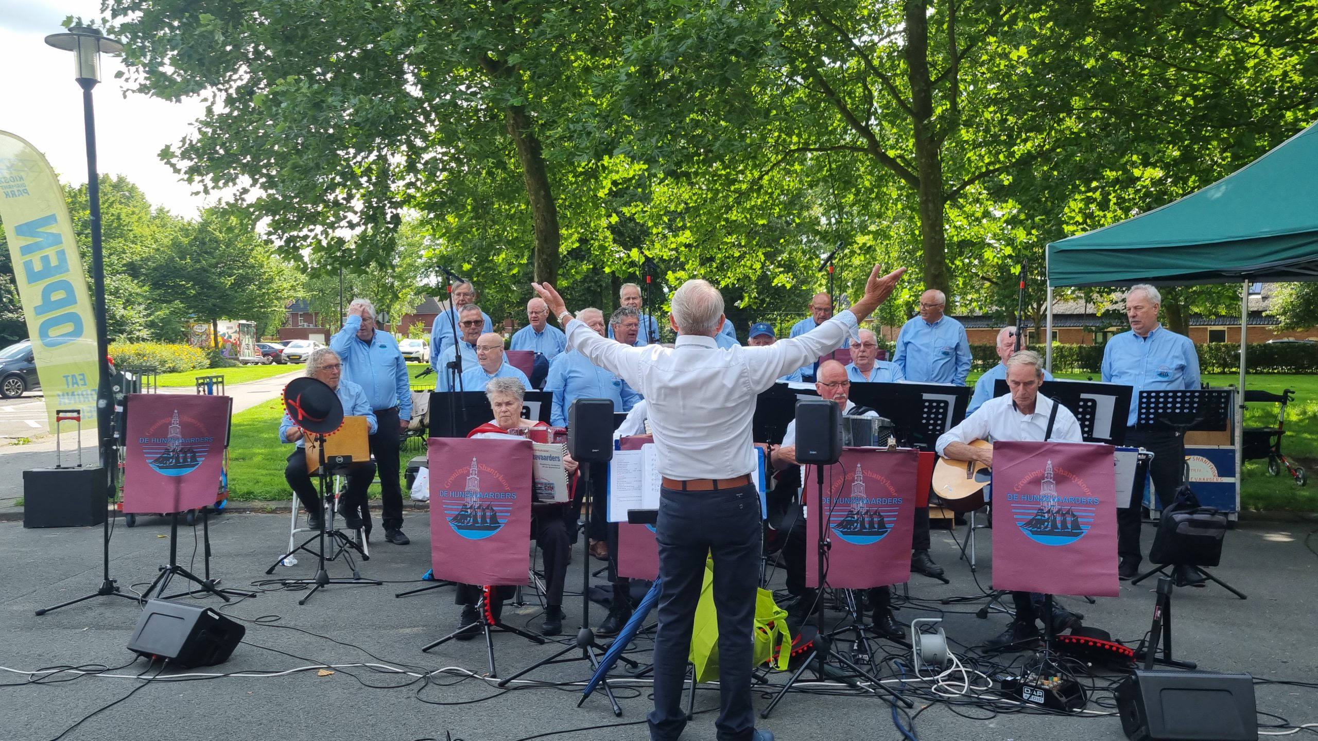 Shantykoor De Hunzevaarders heeft zondagmiddag een concert gegeven bij de kiosk in de wijk Vinkhuizen. Volgens Martijn Schuurhuis was het een succesvol optreden, maar zijn er wel wat zorgen over de toekomst: het koor heeft namelijk nieuwe aanwas nodig.