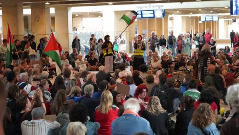 Een groep van enkele honderden demonstranten is deze donderdagavond om 18.00 uur bijeengekomen op het Hoofdstation om te demonstreren tegen de situatie in Gaza. Het Groningse gemeentebestuur uit ook zijn zorgen en roept het kabinet op om al het mogelijke te doen om tot een staakt-het-vuren te komen.