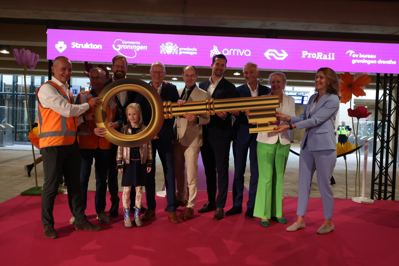 In de ondergrondse reizigerspassage, die vanaf nu klaar is, werden toespraken gehouden en werd de grote ‘sleutel’ doorgegeven voor de ingebruikname van het station.