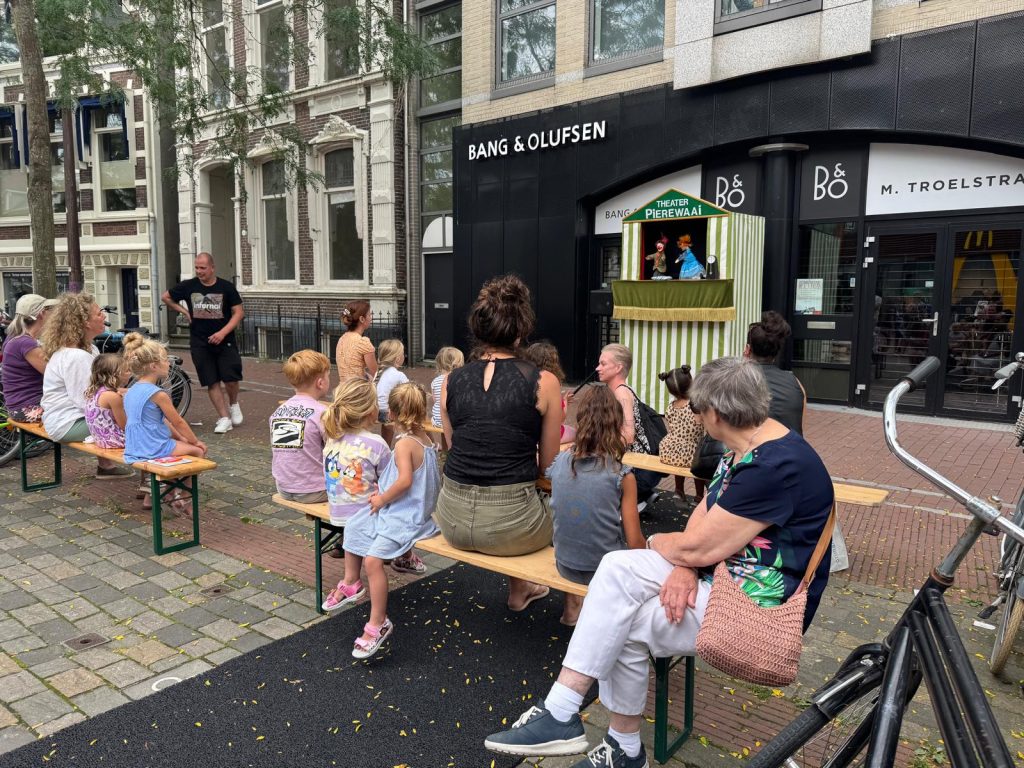 “Er werd bijvoorbeeld Franse muziek ten gehore gebracht. Twee dames maakten muziek op kleine accordeons. Maar we hadden ook een spel jeu de boules waar mensen aan deel konden nemen. We hadden kraampjes waar Franse hapjes, zoals versgebakken quiches tot Franse worstjes en kaasjes, werden verkocht en en werden handgemaakte producten in de Franse stijl, zoals keramiek en sieraden verkocht. Daarnaast hadden we een poppenkast, die erg in trek was bij kinderen en er waren steltlopers actief. Het geheel, ook in combinatie met kunstenaars die op verschillende plekken actief waren en aan het werk waren, gaf het gevoel van de Place du Tertre, naar het beroemde plein dat je in Parijs aantreft. Dat gevoel overheerste, en dat is precies wat we wilden bereiken.”