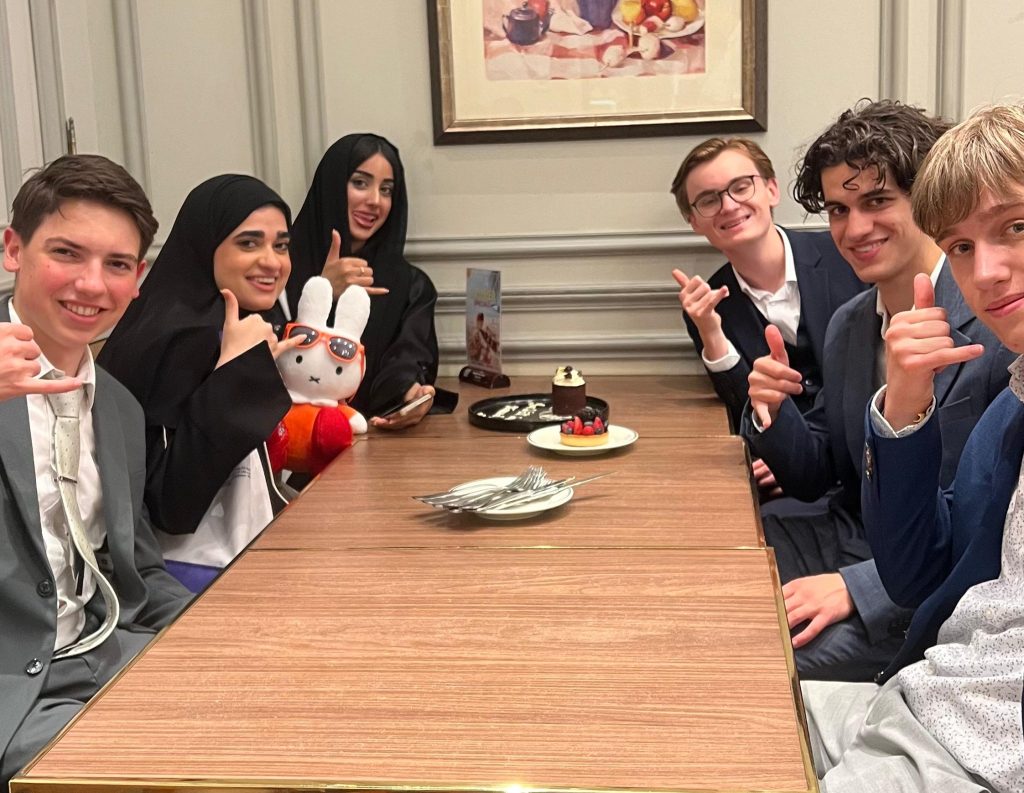 “Om ons goed voor te bereiden voor Dubai hebben we een driedaagse training gehad op de Rijksuniversiteit Groningen. We hebben daar oefencolleges gevolgd en geprobeerd zoveel mogelijk stof te behandelen. Op 5 juli zijn we bij het krieken van de dag naar Schiphol gereden. Daniël reed met ons mee. En toen begon de reis. Toen we aankwamen in Dubai, viel de warmte als eerste op. Vervolgens gingen we naar ons hotel waar ook de andere deelnemers verbleven.”