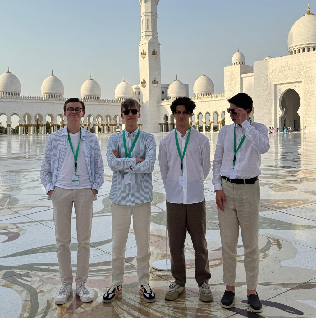 “Dat waren de contacten met de andere landen. In het vliegtuig naar Dubai zat ook de Litouwse delegatie. Daar hebben we gelijk contact mee gelegd. Maar we hebben ook hele leuke contacten opgebouwd met deelnemers uit Irak, Canada en Montenegro. Eigenlijk heeft het mij verbaasd hoe snel je een connectie maakt. Het is ook niet zo dat je een aantal scheikunde-nerds op een hoop gooit: we hebben best wel wat leuke dingen gedaan. We hebben de stad Abu Dhabi bekeken. We zijn naar een indoor pretpark geweest, we hebben een moskee bezocht en we hebben een bezoek gebracht aan een dependance van het Louvre Museum. Juist deze activiteiten zorgden er ook voor dat je andere deelnemers leerde kennen.”