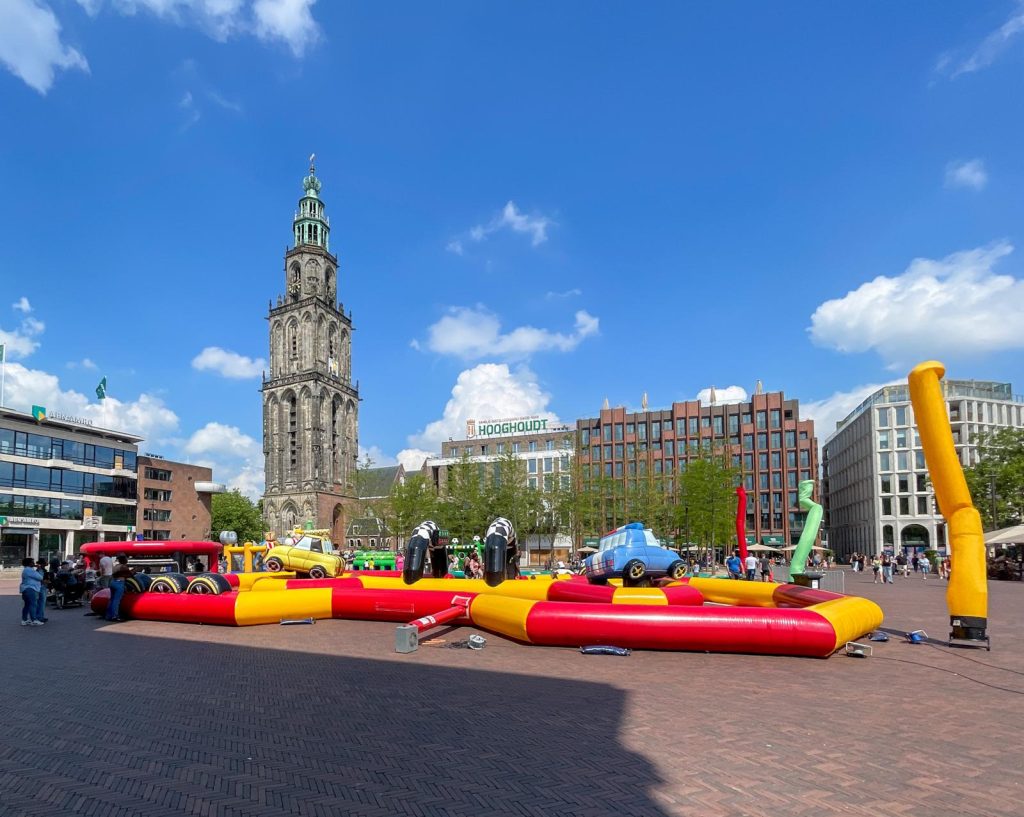 Rond 16.30 uur werd er druk gewerkt op de Grote Markt om de verschillende springkussens weer in te pakken. Sinds de ochtenduren waren er op de Grote Markt en Vismarkt meer dan veertig springkussens te vinden waar kinderen naar hartenlust plezier konden maken. “Het was de hele dag druk,” vertelt verslaggever Erick Bakker. “Op de Vismarkt was het nog iets drukker dan op de Grote Markt, maar de organisatie schat in dat zeker duizend kinderen gebruik hebben gemaakt van Groningen On Air.”