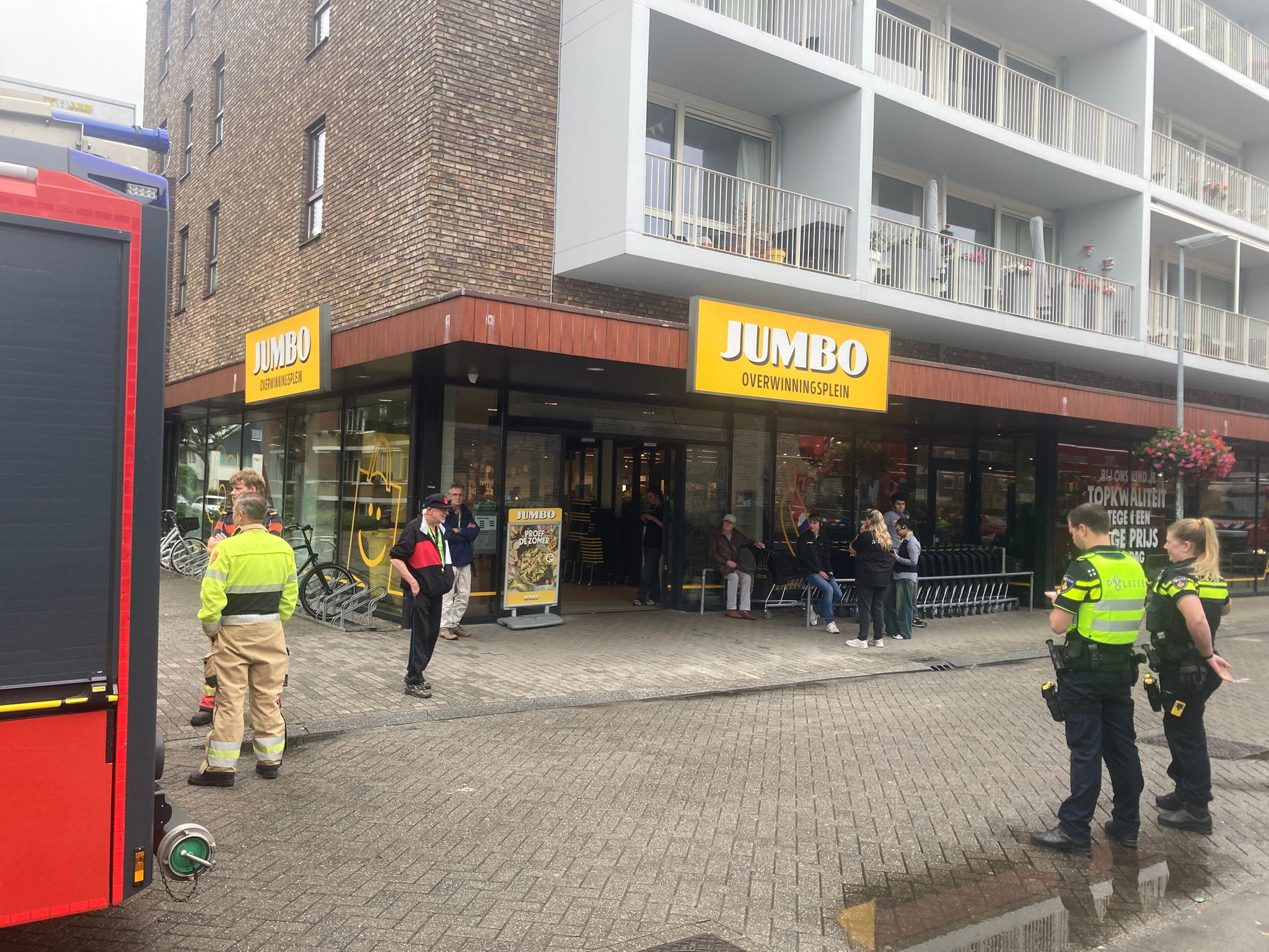De brandweer rukte dinsdagochtend uit voor een brand in de Jumbo supermarkt aan het Overwinningsplein.