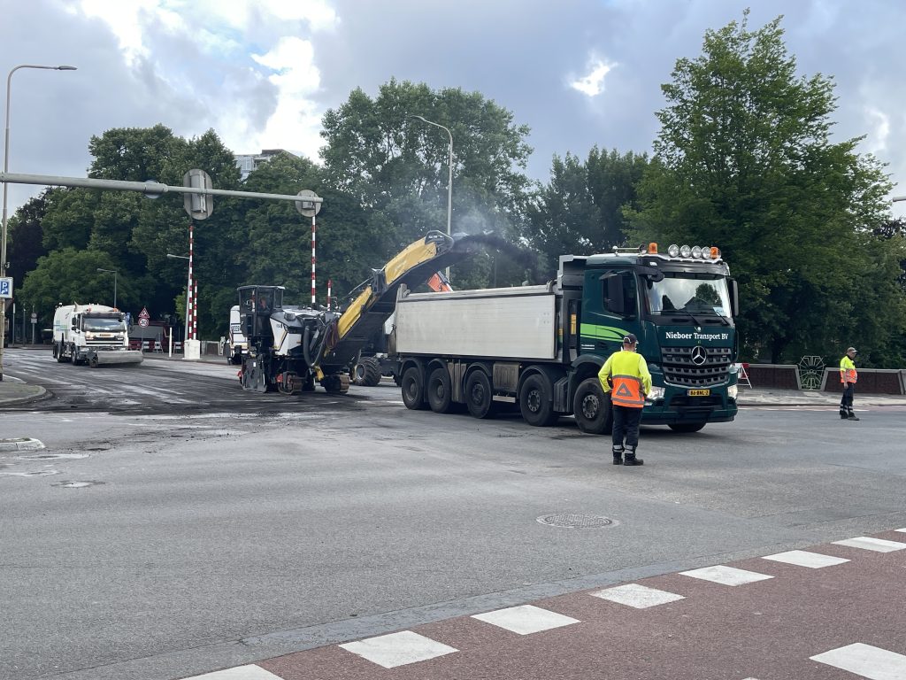 De eerste werkzaamheden aan de Herebrug zijn zondagochtend begonnen. De brug wordt opnieuw geasfalteerd, evenals het stuk Herestraat tussen het Hereplein en het Gedempte Zuiderdiep.