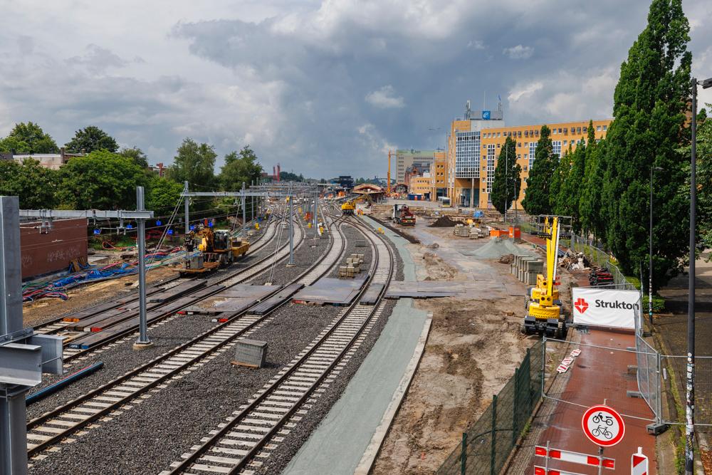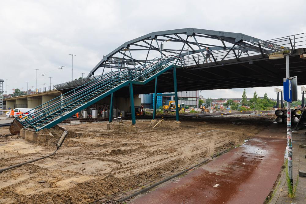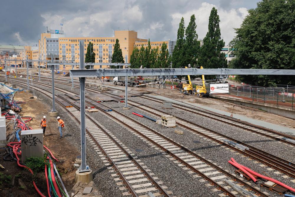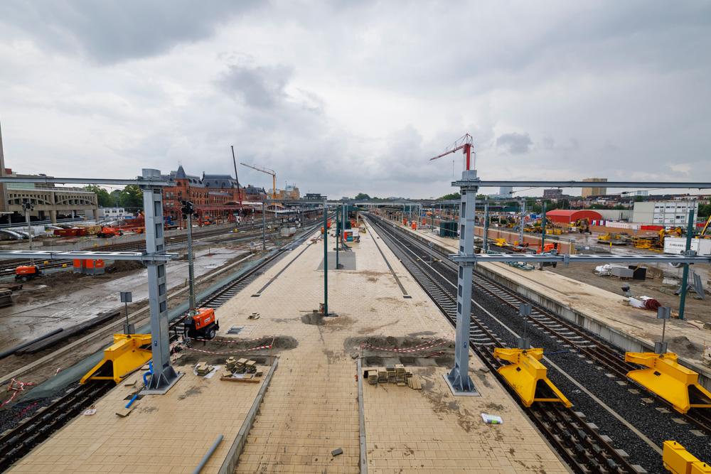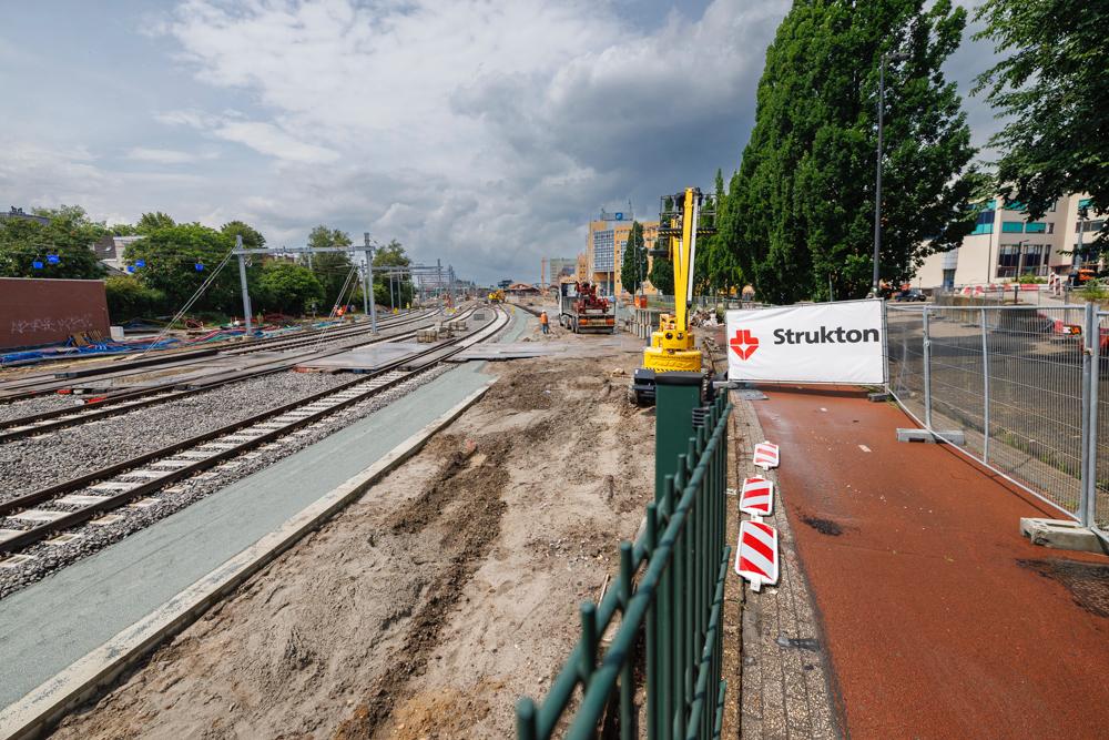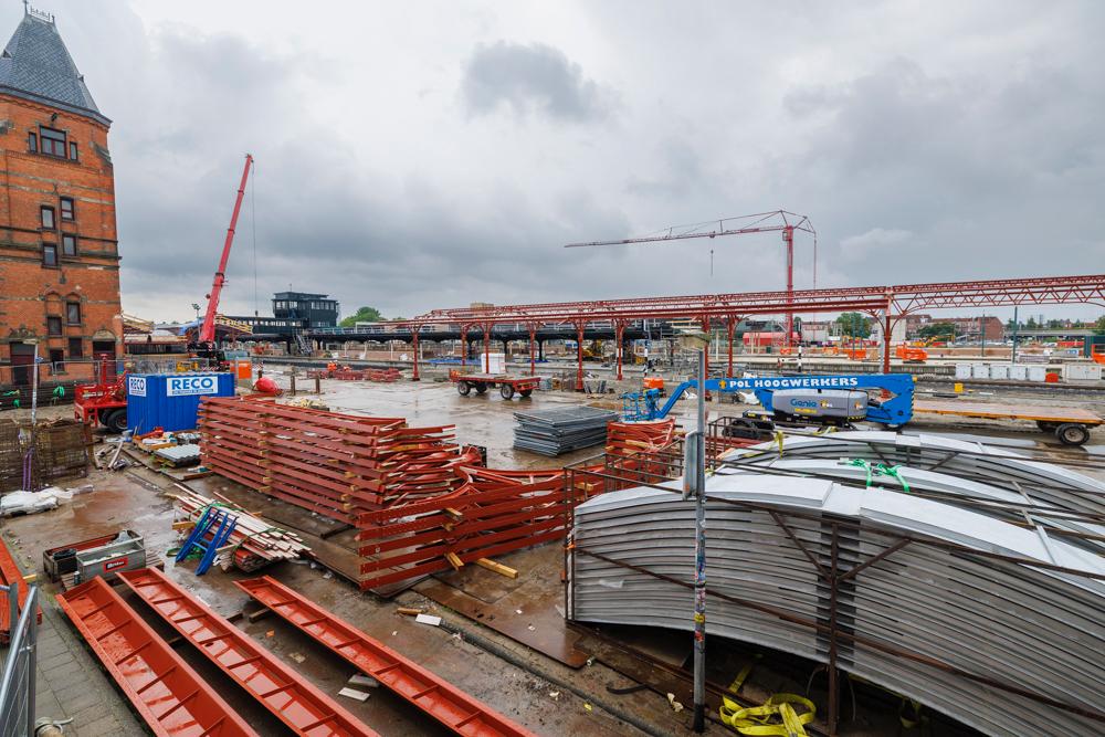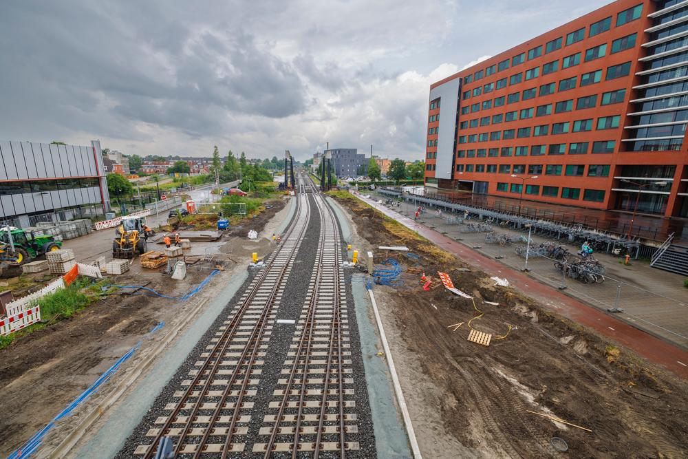 Wie afgelopen zondag 6 juli een kijkje nam bij het project, zag dat de werkzaamheden al flink vorderden: de sporen zijn gelegd, infrastructuur zoals seinen en wissels zijn geplaatst en aan de oostzijde is de bovenleiding getrokken. Maar er moet ook nog veel gebeuren. De komende dagen ligt de focus op het straatwerk aan de westzijde, het installeren van meubilair op de perrons en het aanbrengen van markeringen. Ook wordt er gewerkt aan de perronkappen die dakbedekking gaan krijgen.