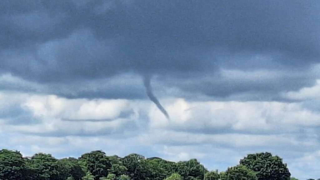 Ten noorden van Groningen Airport Eelde was woensdag aan het begin van de middag een bijzonder weersverschijnsel te zien: tijdens een zware bui verscheen er een tuba.