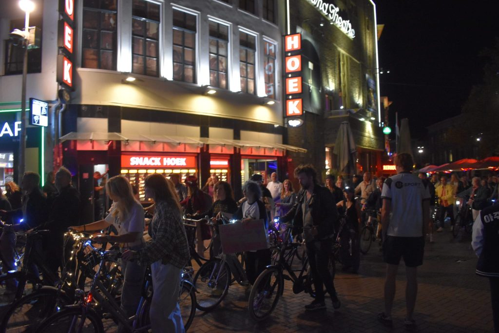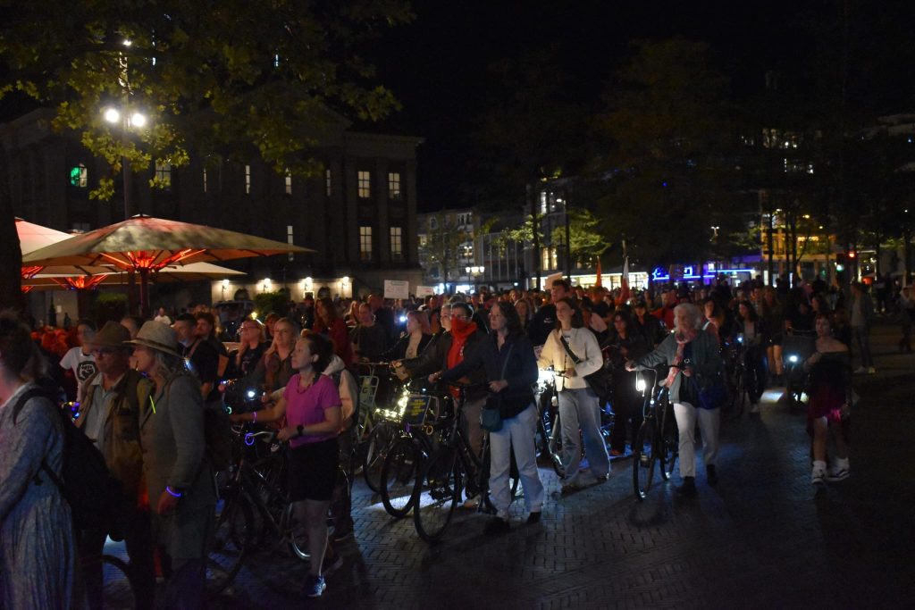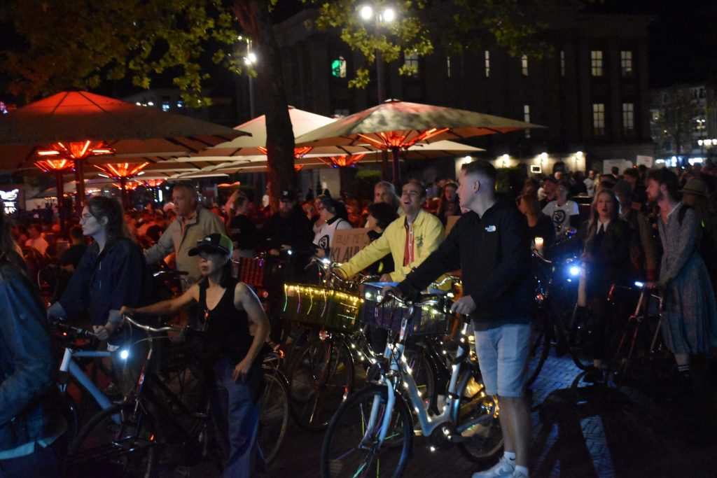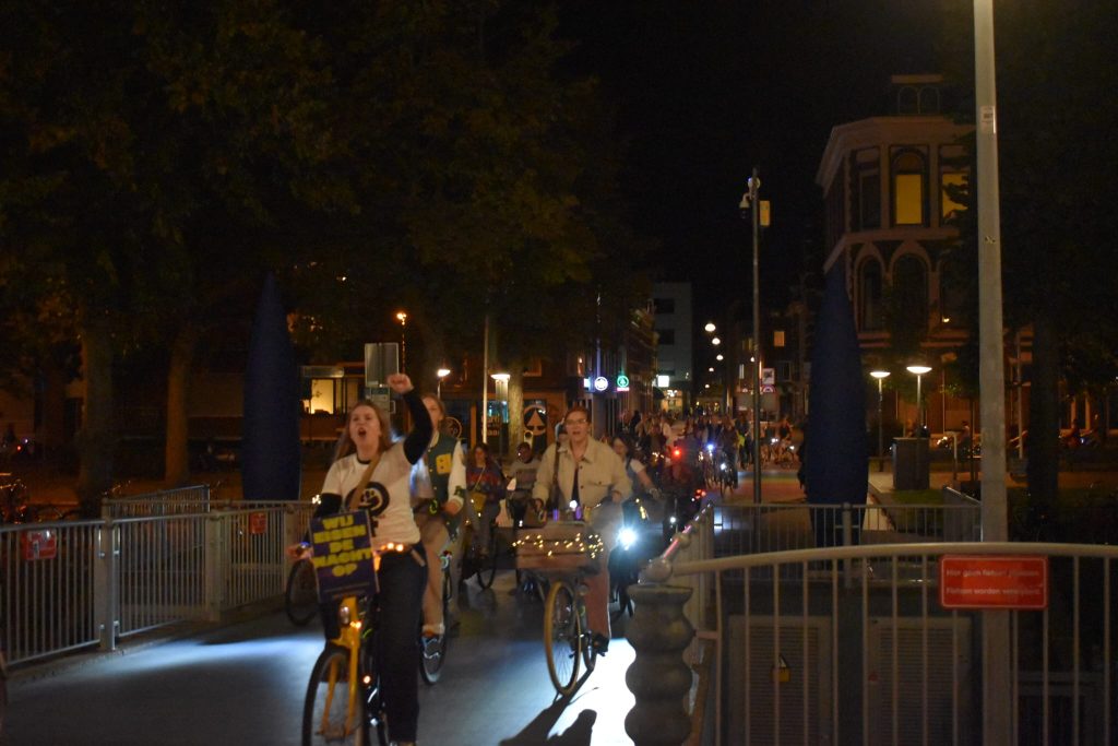 De fietstocht begon om 21.30 uur op de Grote Markt. Op fietsen, versierd met lichtjes en borden, fietste de groep een route via de Poelestraat, het Schuitendiep en de Vismarkt. De Groningse organisatie laat weten dat de opkomst met ongeveer achthonderd deelnemers veel hoger was dan verwacht.