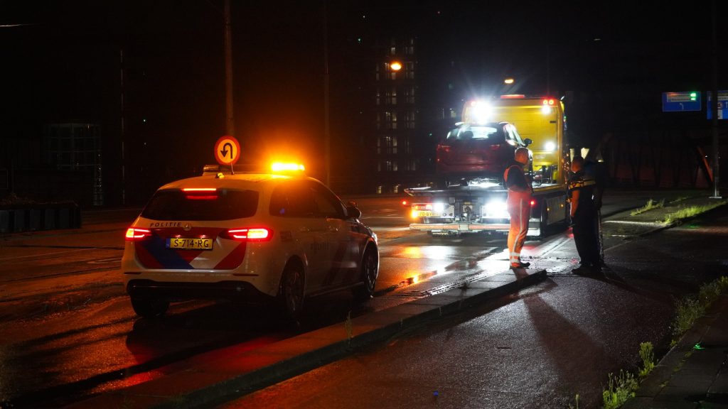 Een personenauto moest zondagavond weggesleept worden nadat deze in botsing was gekomen met een betonnen verhoging bij het Emmaviaduct. Dat meldt nieuwsfotograaf Patrick Wind van 112groningen.nl.