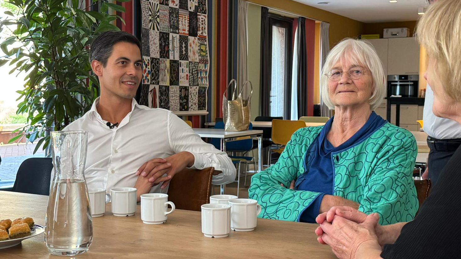 Jetten sloot zijn tour dinsdagmiddag af bij het Ebbingehof in Stad, een woongemeenschap voor 50-plussers. Daar praatte de D66-lijsttrekker met bewoners over hun woonervaringen en de obstakels die ze tegenkwamen: