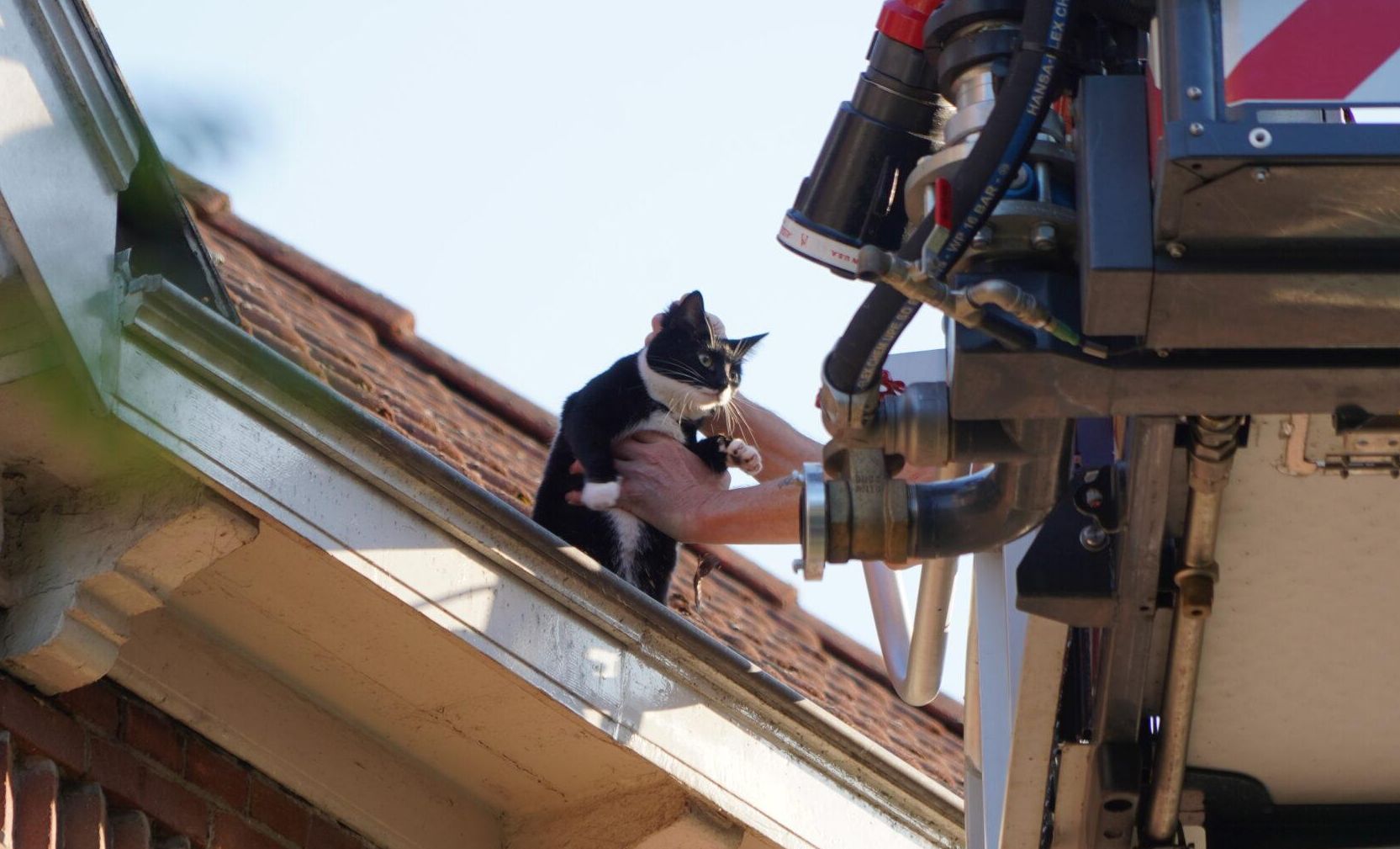 Uiteindelijk besloten de eigenaren de brandweer in te schakelen voor hulp. De brandweerlieden arriveerden vrijdagavond met een hoogwerker en klommen samen met de eigenaar het dak op om het dier te benaderen. Dat lukte: de kat is veilig terug bij de eigenaar.