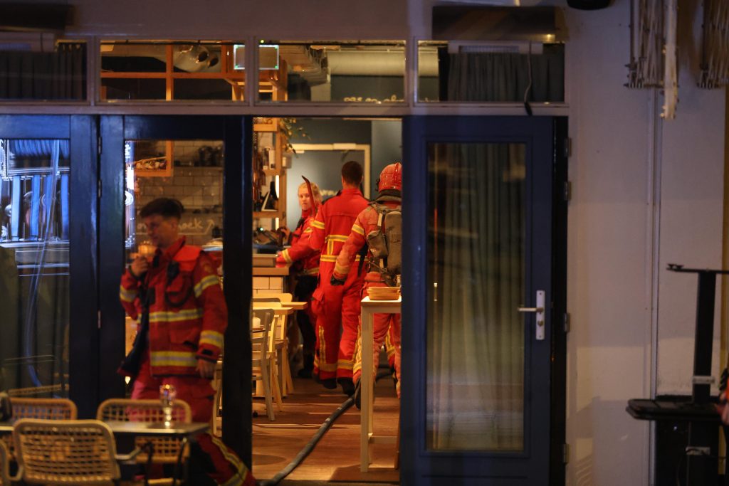 De brandweer is zaterdagavond urenlang in touw geweest aan het Schuitendiep om een brand in een restaurant te lokaliseren. Om de brandhaard te vinden, moest men flink wat sloopwerk verrichten. Niemand raakte gewond.