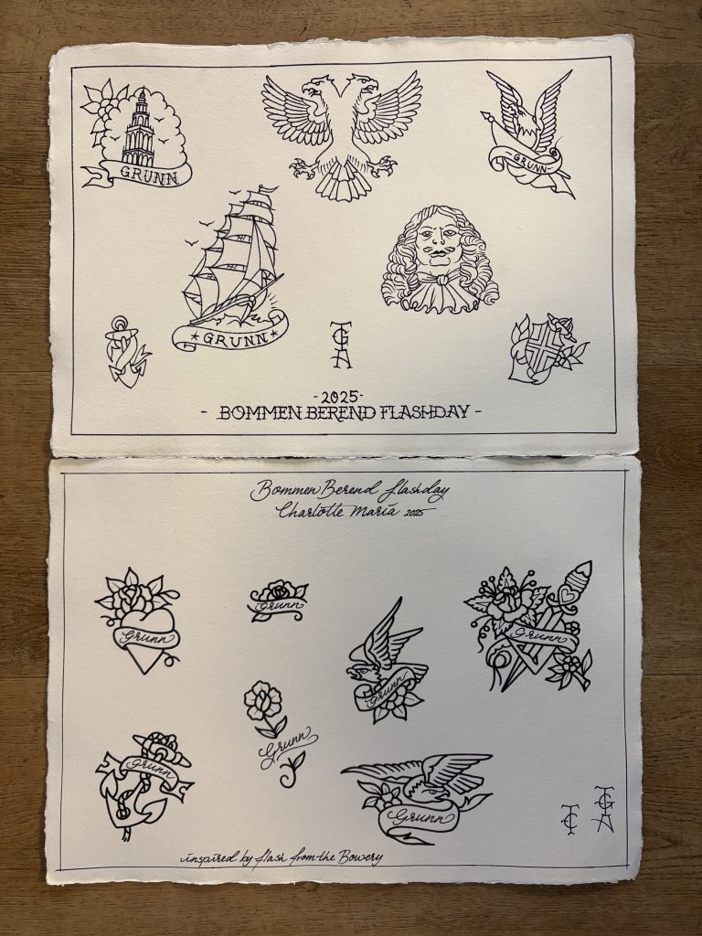 Tijdens de Flash Day (op 28 augustus dus) bieden de tattooshops vooraf ontworpen tattoos aan met Groningse thema’s. Denk aan de Martinitoren, de eierbal of het Peerd van Ome Loeks. De tattoos zijn klein, snel te zetten en daardoor goedkoper dan een ontwerp op maat.